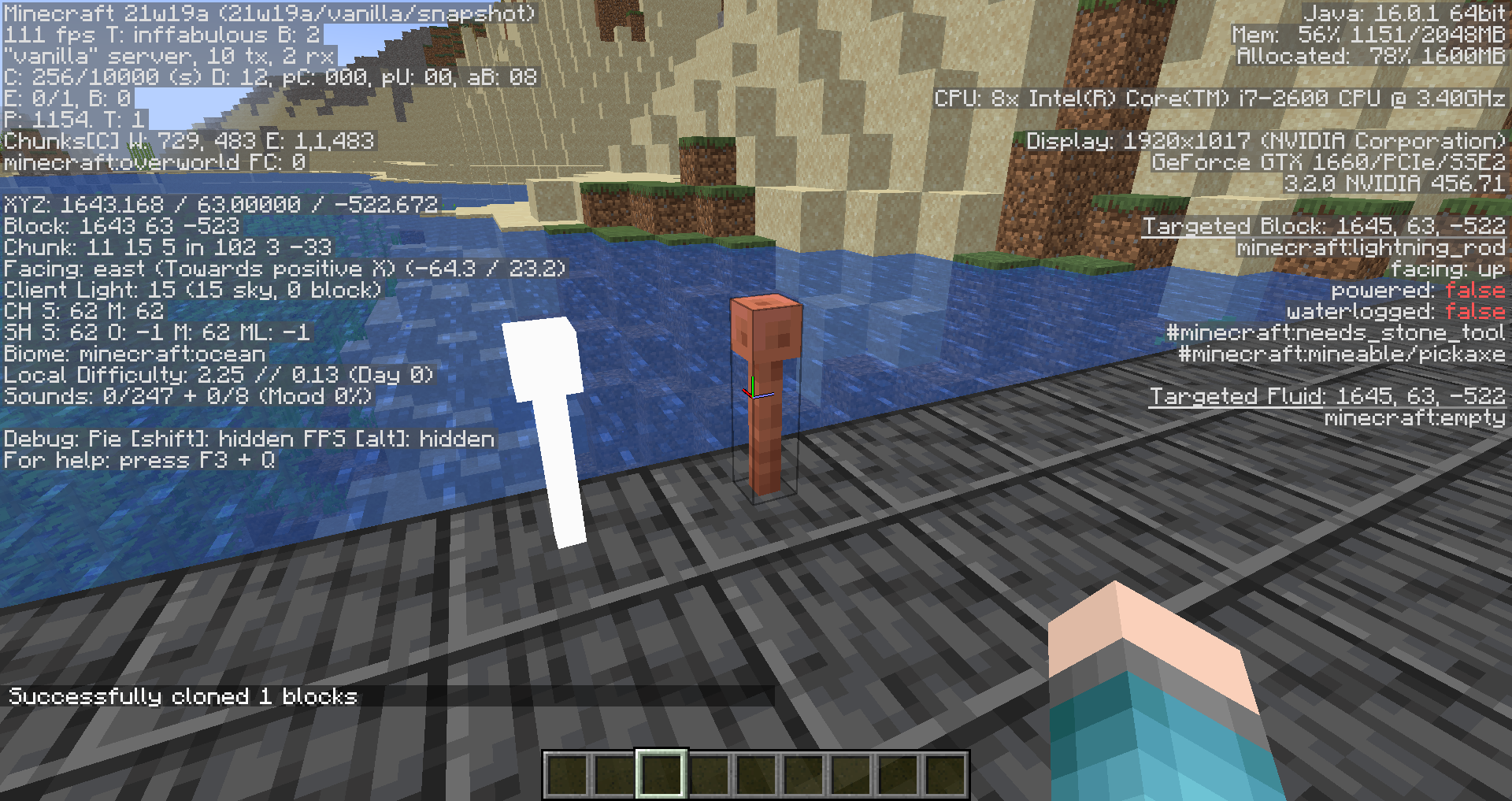 → ❌ Notice how the clone command does not clone the "powered" value of a lightning rod.
