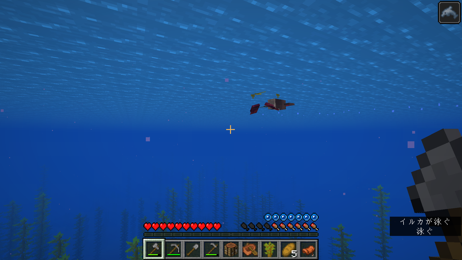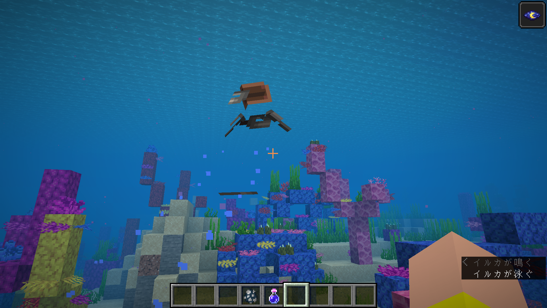 1.16.1 When I was doing the Ender Dragon Subjugation RTA in Easy Mode, I happened to discover the sea and was looking for a sunken ship in the warm ocean with coral reefs. And when I was rowing a boat, I heard a dolphin's voice, so I searched for a dolphin. Then, I found a pink creature that I had never seen, and when I approached it, I heard a dolphin barking. Surprisingly, I created a new world and experimented again, but this time the dolphins turned brown. I thought it was a bug, and when I restarted it with the same version, it was fixed.