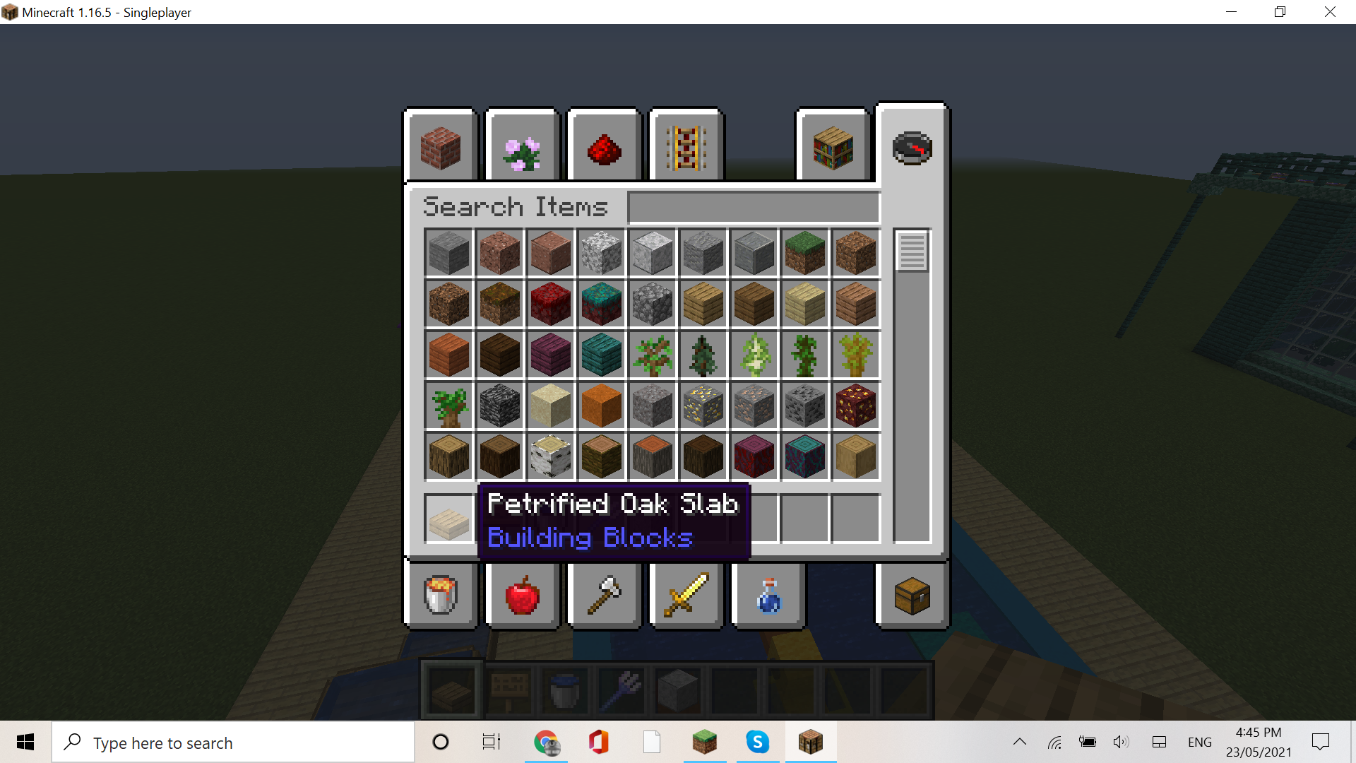 I did take out a normal oak slab in the first place, as there was never any petrified oak slabs available in the inventory.
