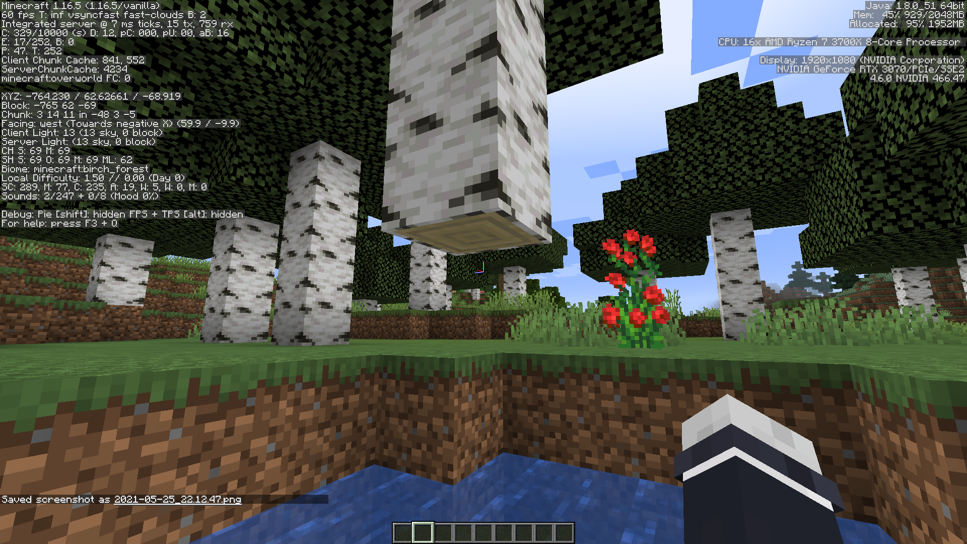 At the seed/co-ordinates above, a floating birch tree is found above a small pond.