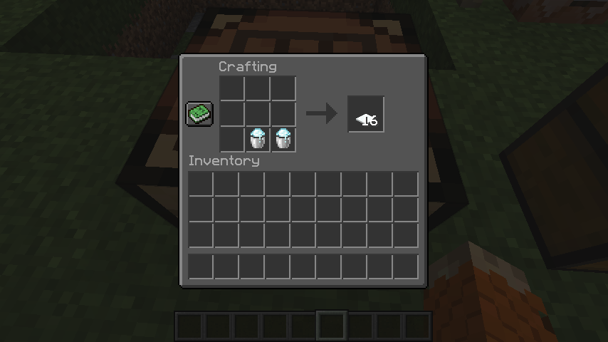 4. For the shaped recipe place 2 Powder Snow Buckets next to each other horizontally.