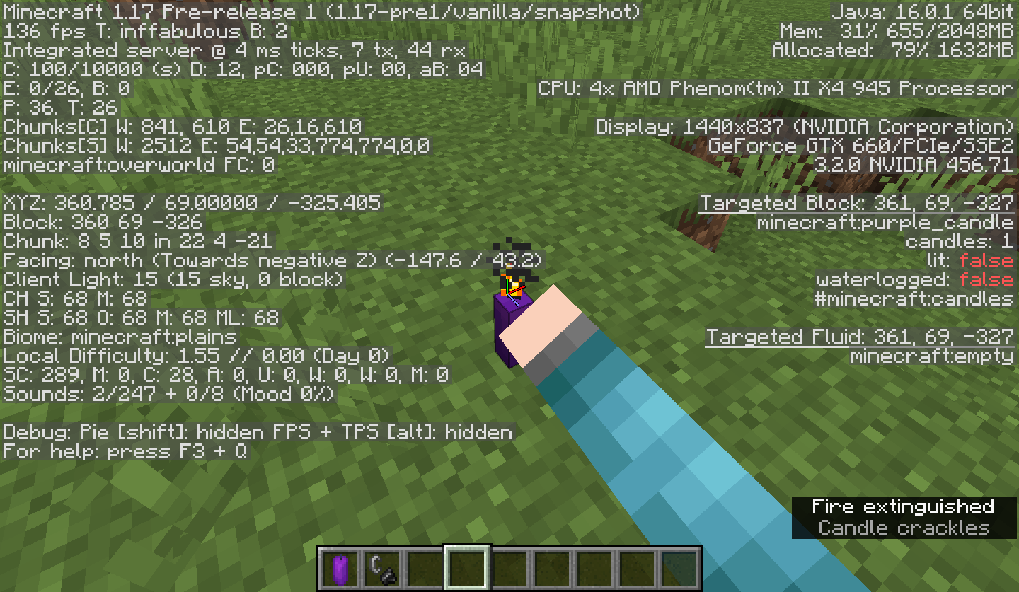 Extinguishing a candle (sound event block.candle.extinguish) shows the subtitle for fire, which is inaccurate: "Fire extinguished"