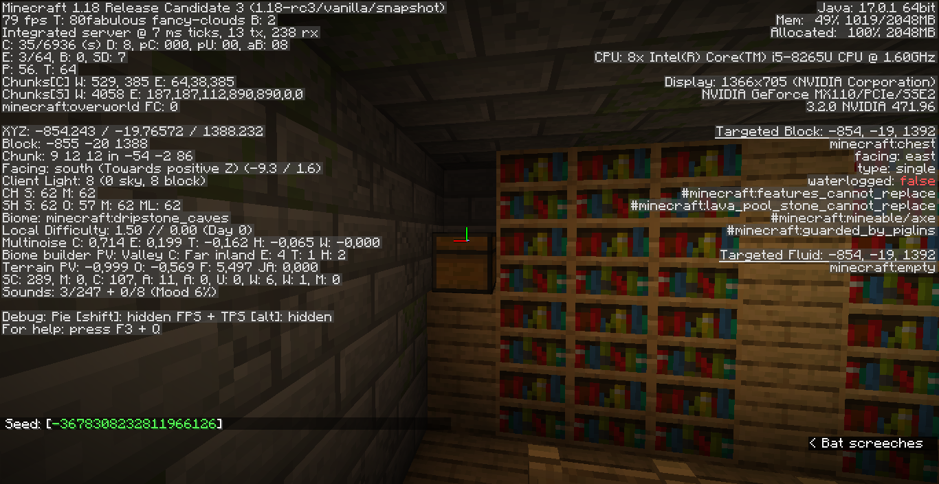 Coordinates: /execute in minecraft:overworld run tp @s -1294 11 1678 -44 22Seed: 381794235707411822