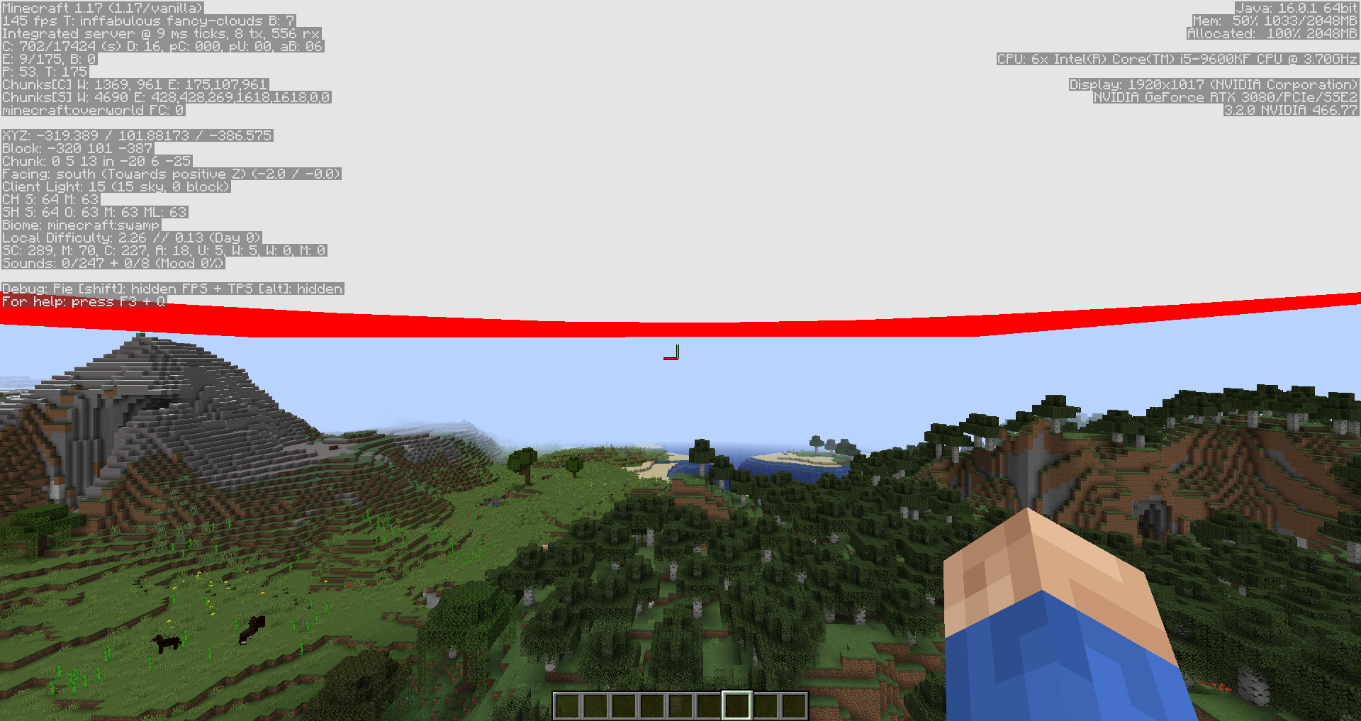 The clouds appear to be offset so that they extend further in the east and south directions than in the north and west directions. A resource pack is used in the images to remove the fog on the clouds for a clearer view.