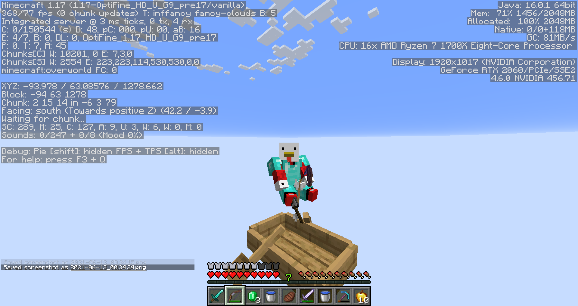 Well i was fetching my items after I died by 2 drowneds with tridents, and got all my stuff and was quickly swimming away and i realised chunks were not loading, so i waited for a little bit and said screw this and save and quit. Well when i loaded my game back up I was still in my boat but the boat was freaking out and my player was freaking out and I was floating above the void. I was really confused and a shoot an arrow and it was sitting still, I also tried throwing my axe and it was still too. Day and night are going by like normal.