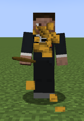When ever the player eats something, there is no eating animation. Instead, the player just appears to hold the food in his hand and particles start.
