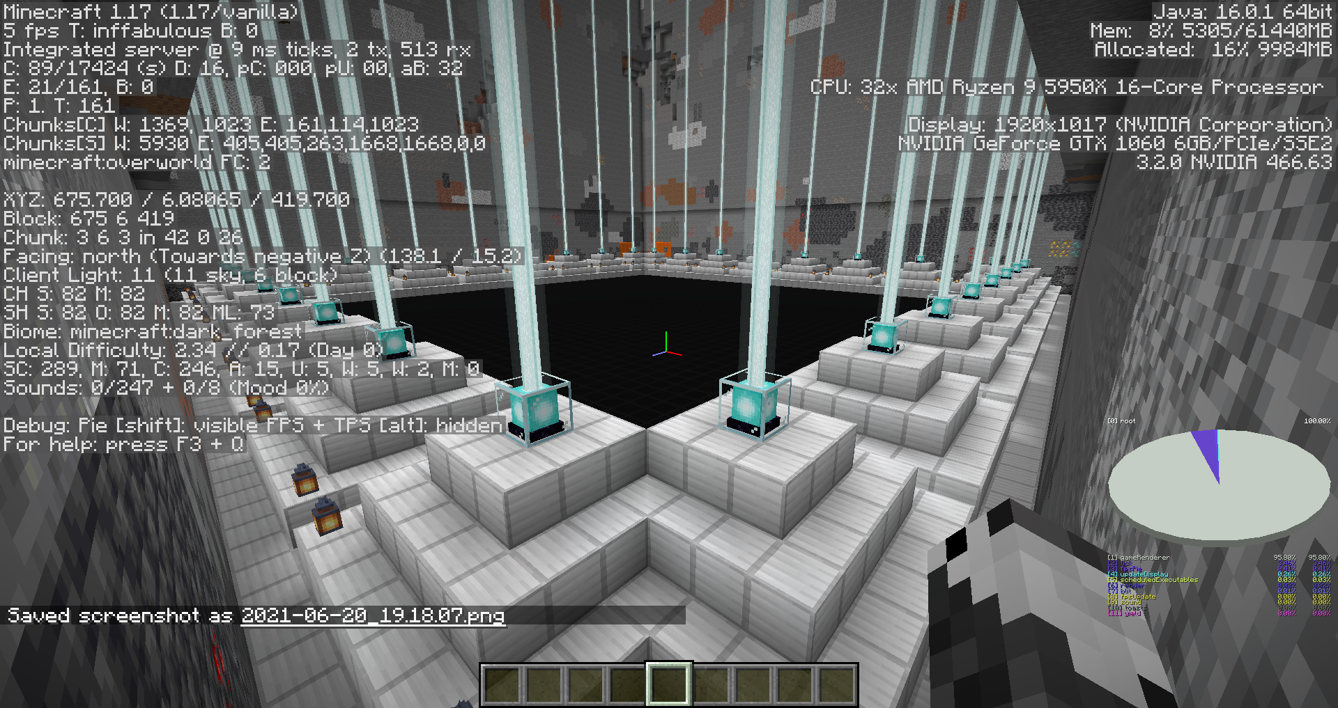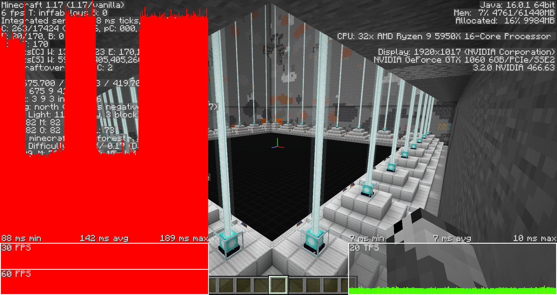 I know the setup is overkill, but I wanted to try this for some asthetic effects. When the beacons aren't powered on I get unlimited frames per second. When I start to activate them one by one, the fps starts to drop rapidly. Once all 32 beacons are activate, I hardly get 5-6 fps