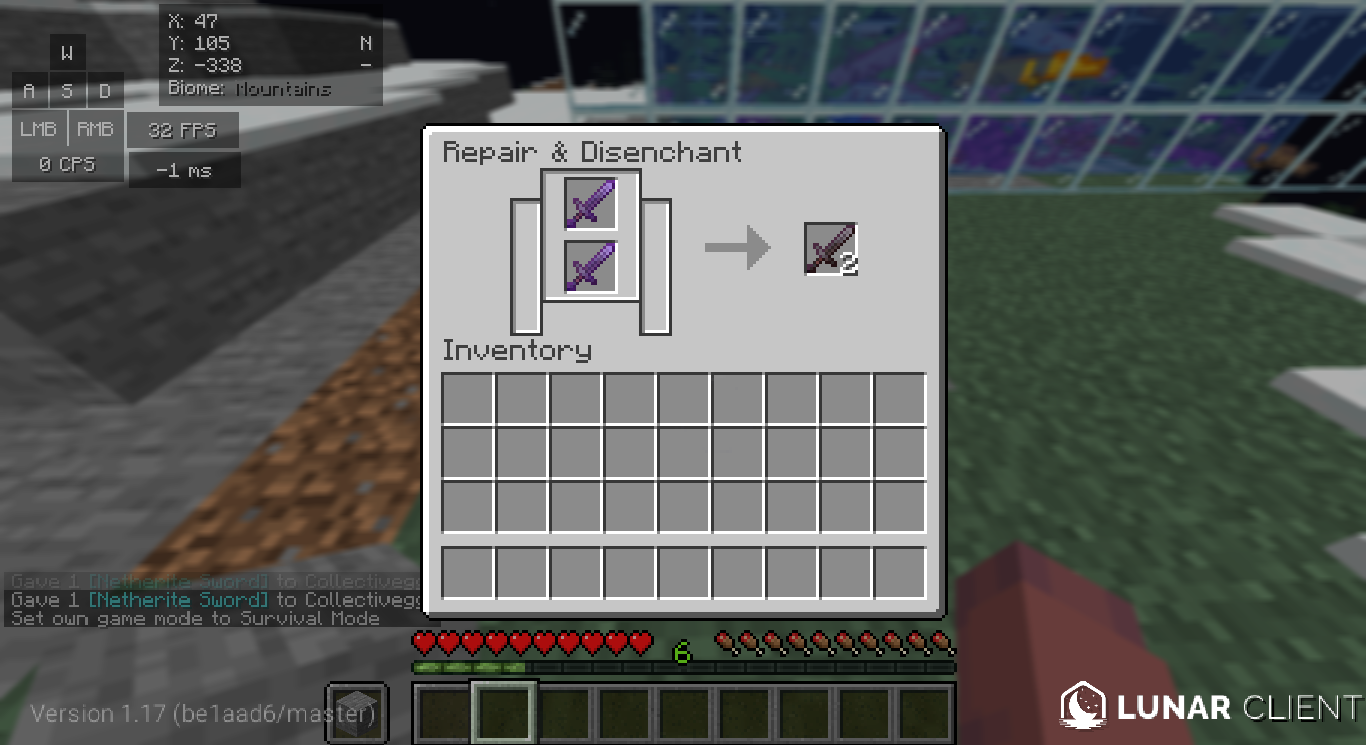 (Attachments below is the bug) The summary explains, i have given my self 2 netherite swords, both with sharpness 5. I put them both in the grindstone and the shift clicked the "Disenchanted version" it had stacked the items