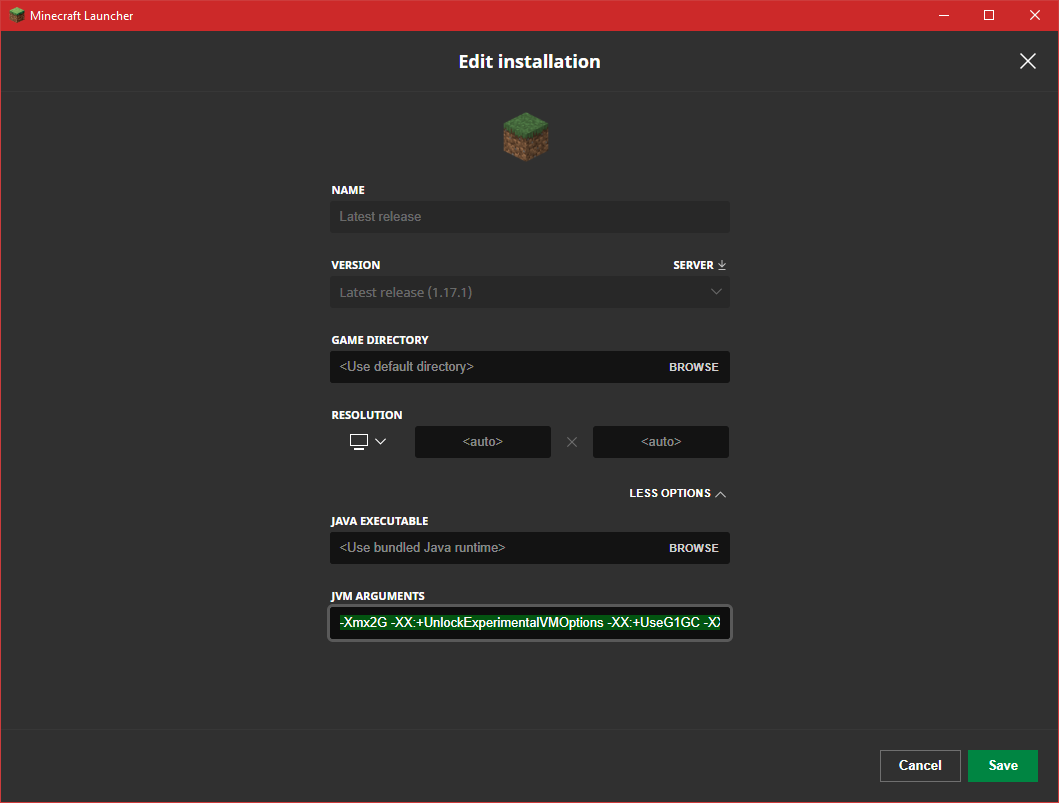-Xmx2G -XX:+UnlockExperimentalVMOptions -XX:+UseG1GC -XX:G1NewSizePercent=20 -XX:G1ReservePercent=20 -XX:MaxGCPauseMillis=50 -XX:G1HeapRegionSize=32M