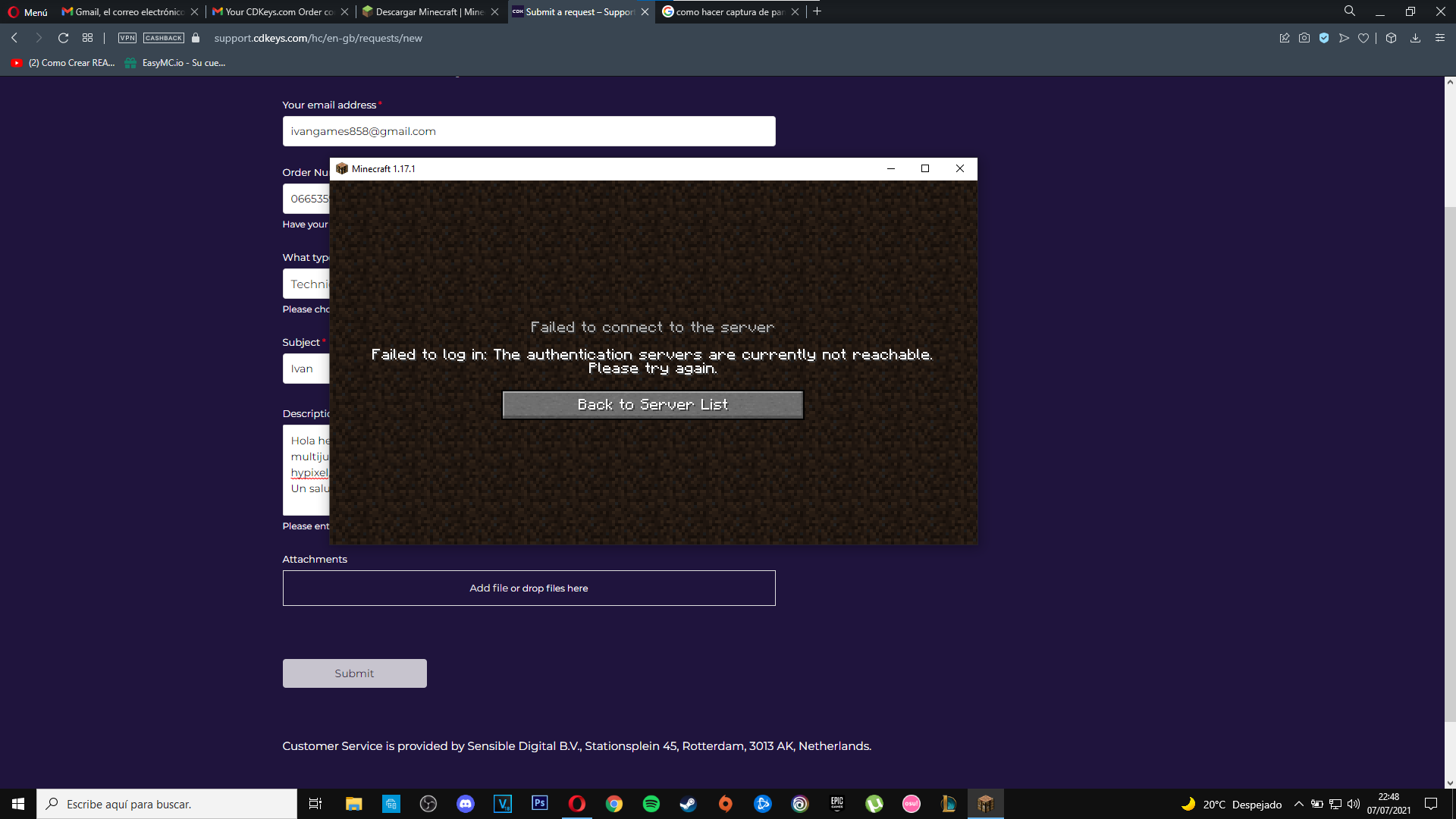 Hello good yesterday I bought a license of minecraft java edition for a page called CDKeys that cost 18 € and it does not let me enter premium minecraft servers such as cubecraft or hypixel and I get this failure that I leave through a photo and I do not know what is the problem.