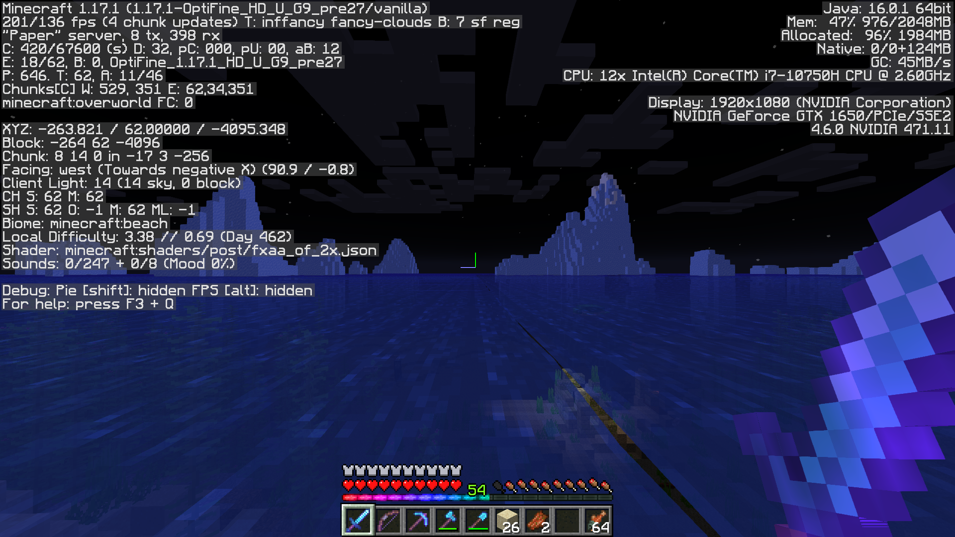 If you are using a shader that makes the water wave, (In my case vanilla tweaks) you will see a visual split between the water at -4095 and -4096
