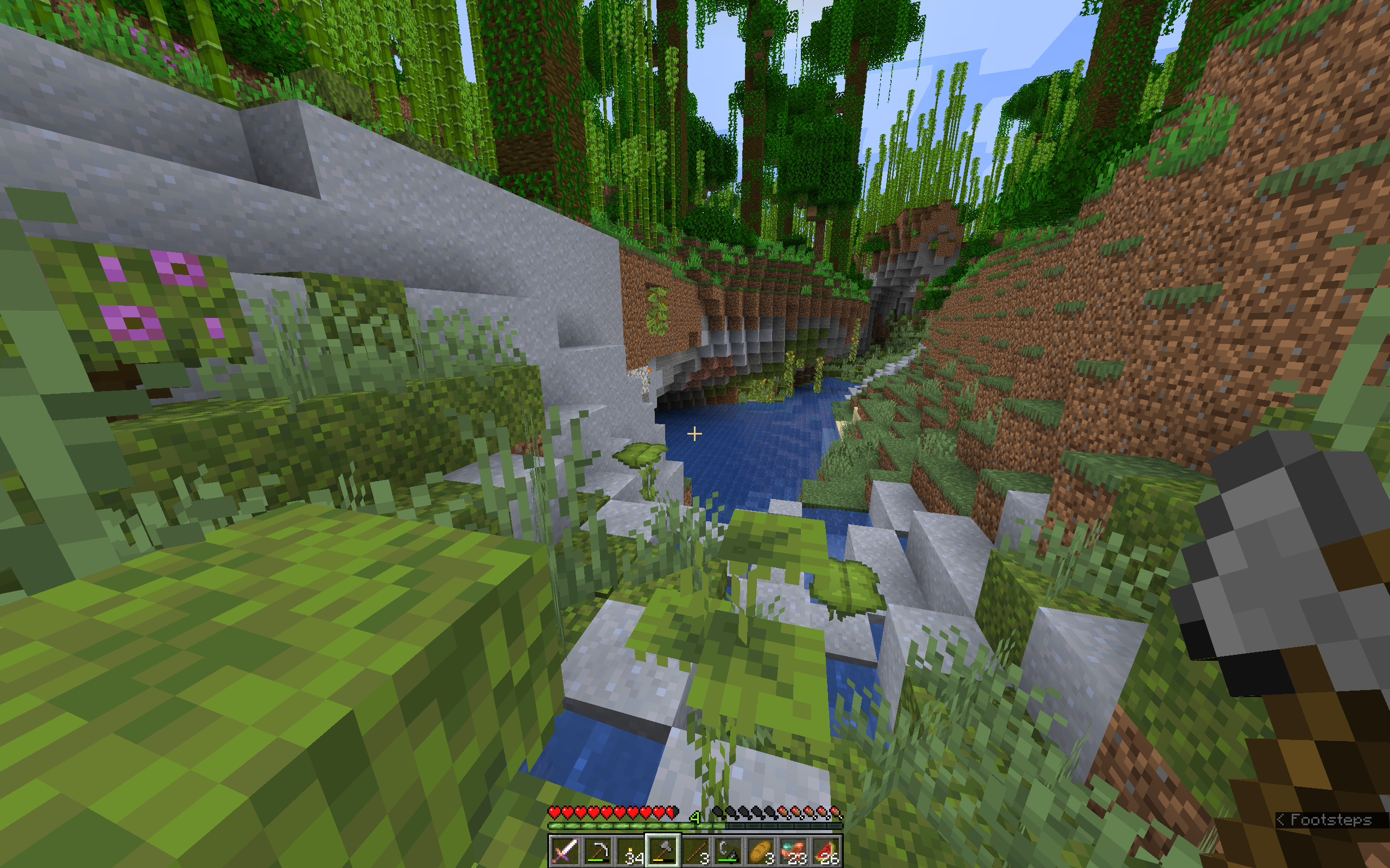 I found lush cave biome generation on the surface of the overworld amongst a bamboo forest. This generation continued along the ground before intersecting with an actual lush cave in the ground.