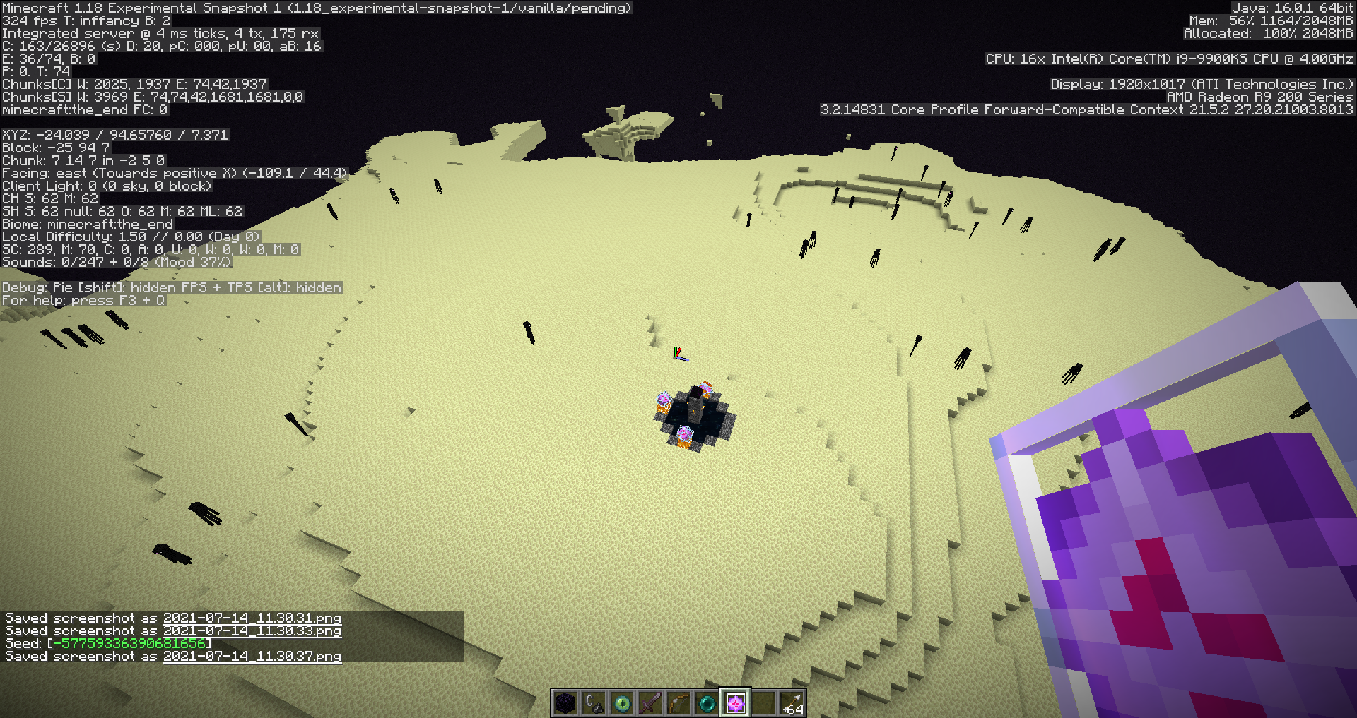 No End Pillars spawned during testing of entering the end.