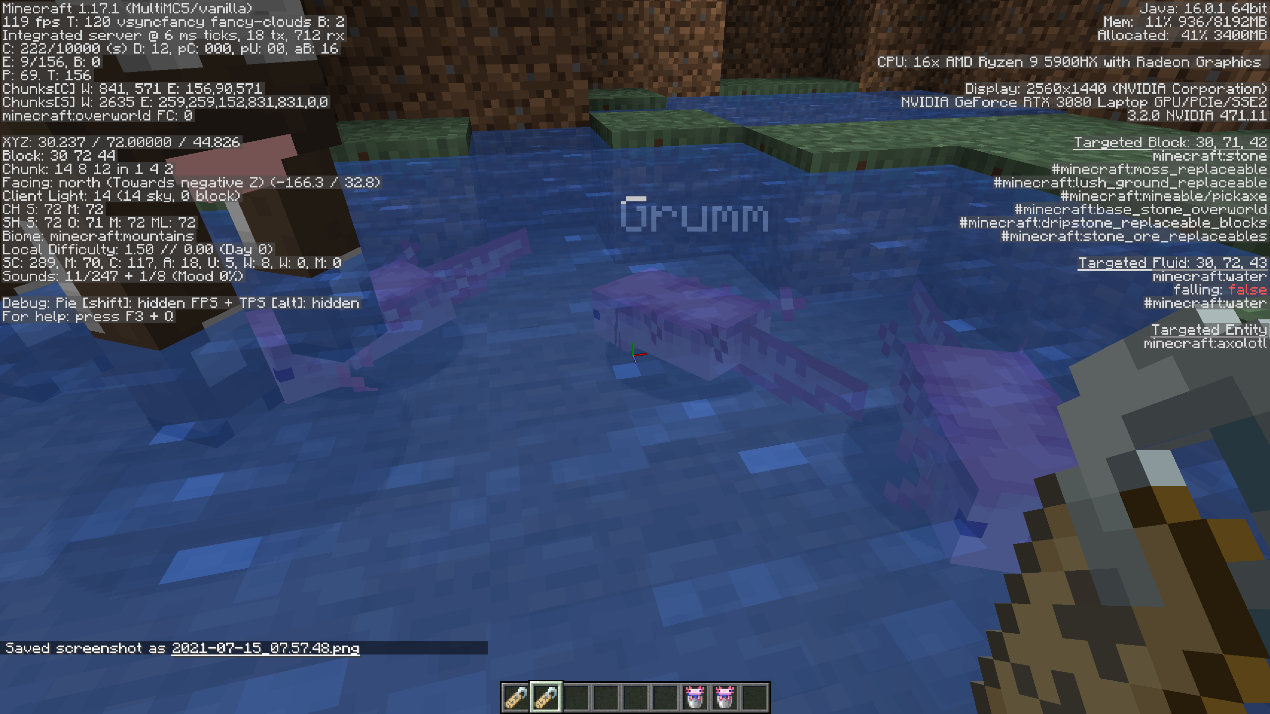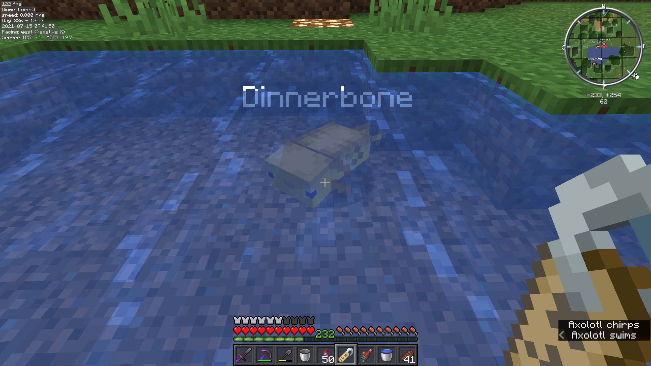 Renamed Axolotls, using an anvil while they are in a bucket or using a name tag while they are swimming, do not flip when naming them Dinnerbone or Grumm.