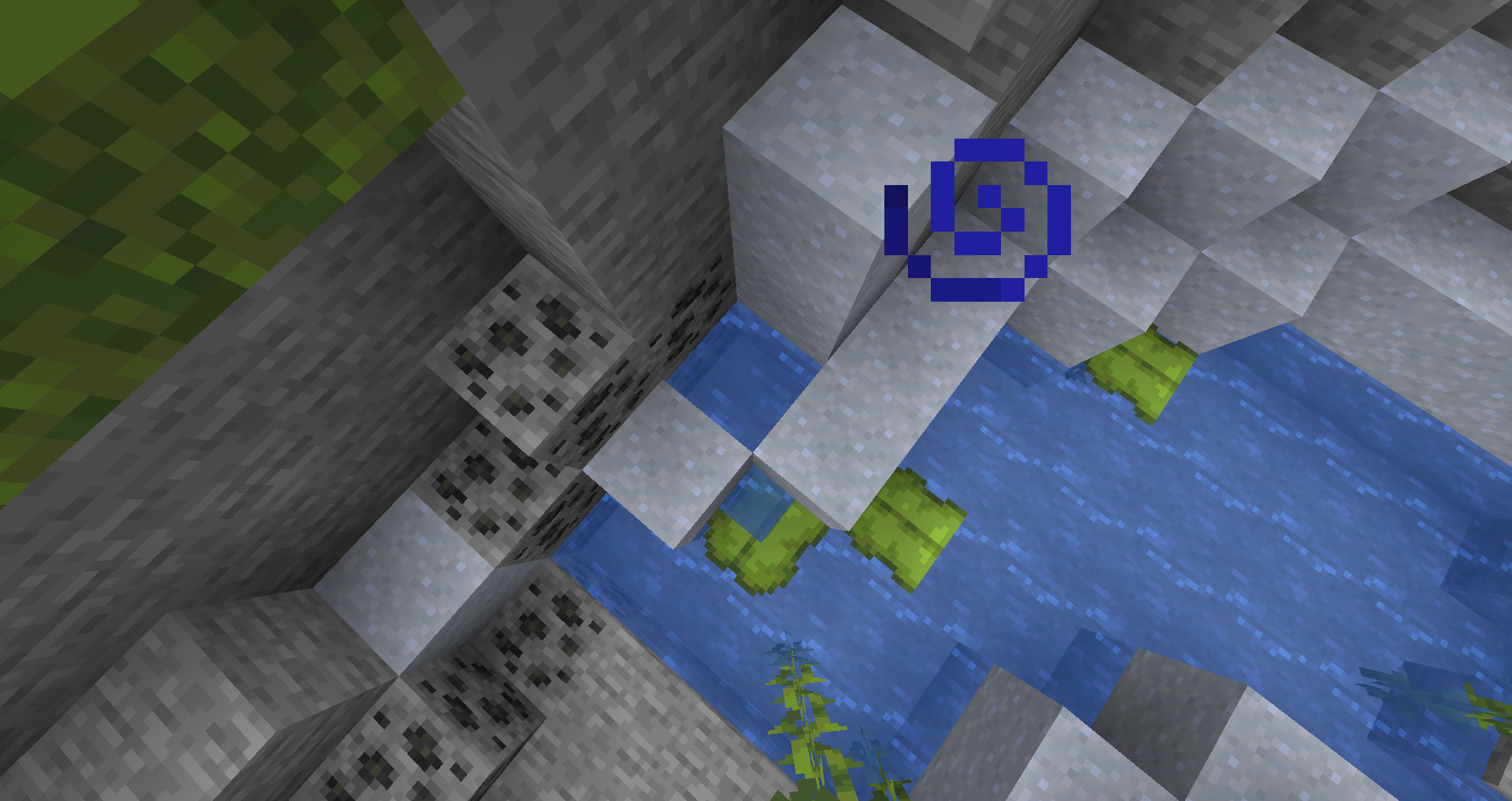 When a large dripleaf is placed diagonally to a block of water with no corner block in between, some water renders on top of the dripleaf leaf.