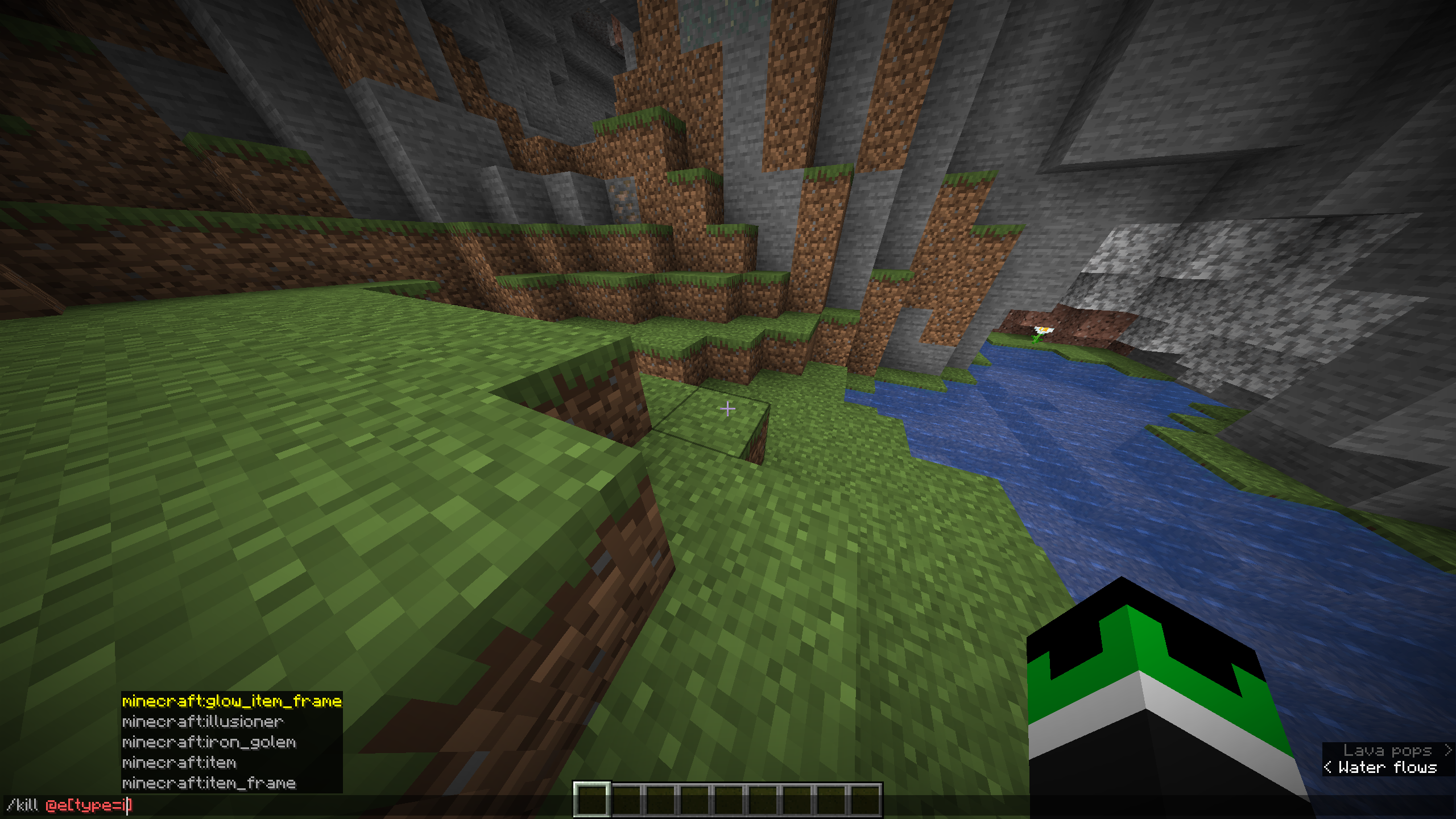 Example: /kill @e[type=i shows minecraft:glow_item_frame first