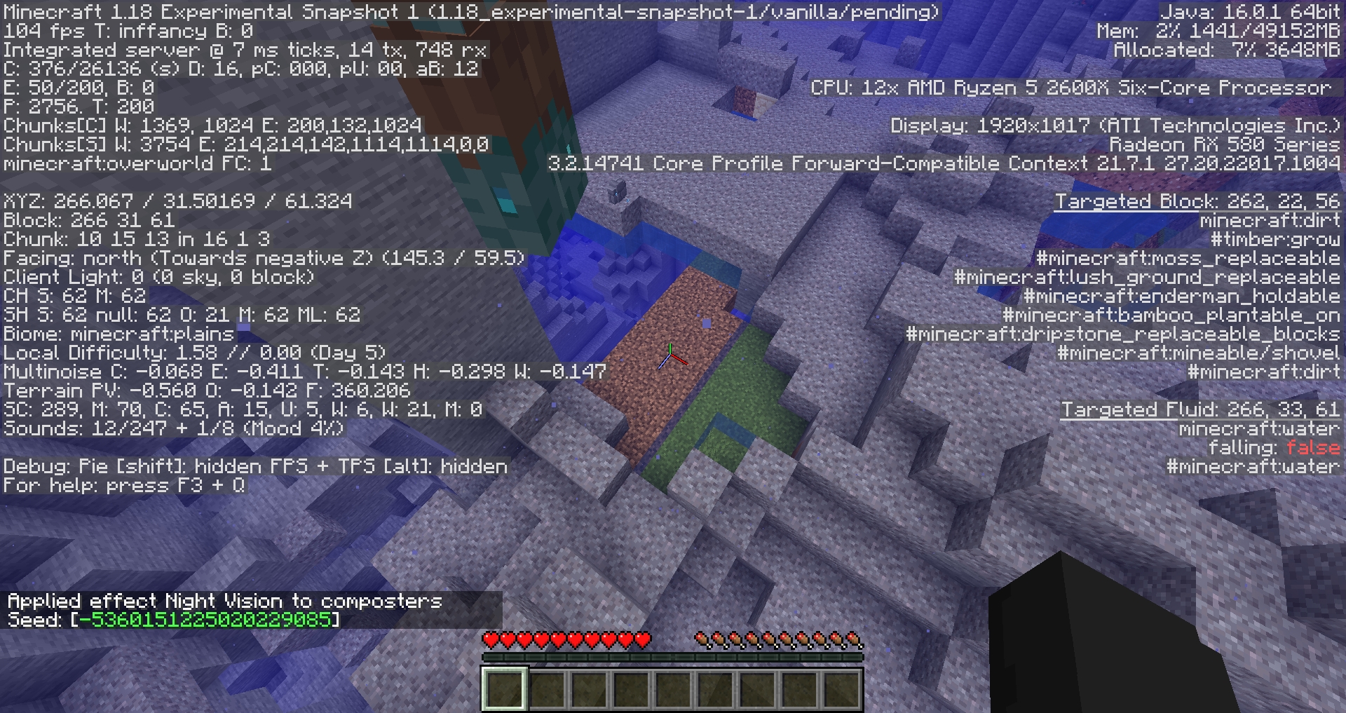 in 1.18 experimental snapshot on seed -5360151225020229085 at the coordinates 266/30/60 there is a patch of grass that can be found underwater that is naturally generated,