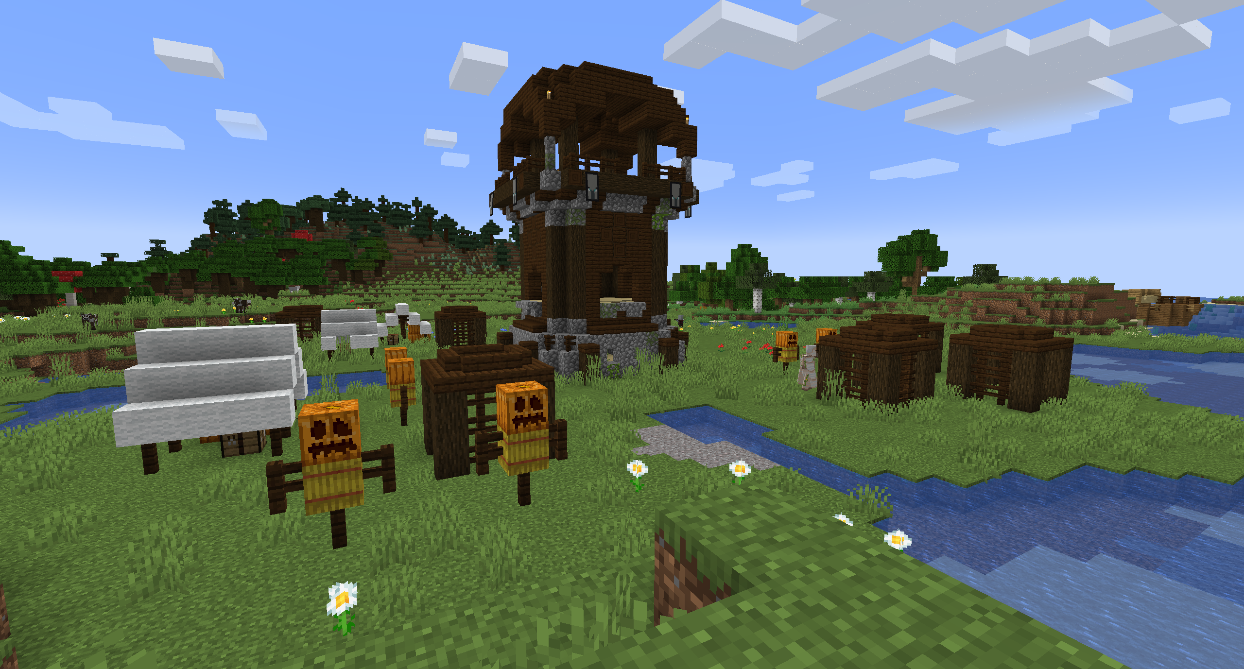 The Pillager outpost structure generates with way too many tents, cages, and scarecrows. I've seen this multiple times in this version on different worlds. It just looks weird to me.