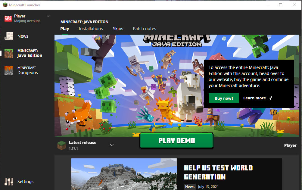 I redeemed the minecraft java code on the mojang webiste. after that, i downloaded the launcher. but i couldn't download the game because it said it has a bug and i had to report it... but now it won't even show that i bought it. i can only play the demo. but it shows that i bought it on the mojang website tho...