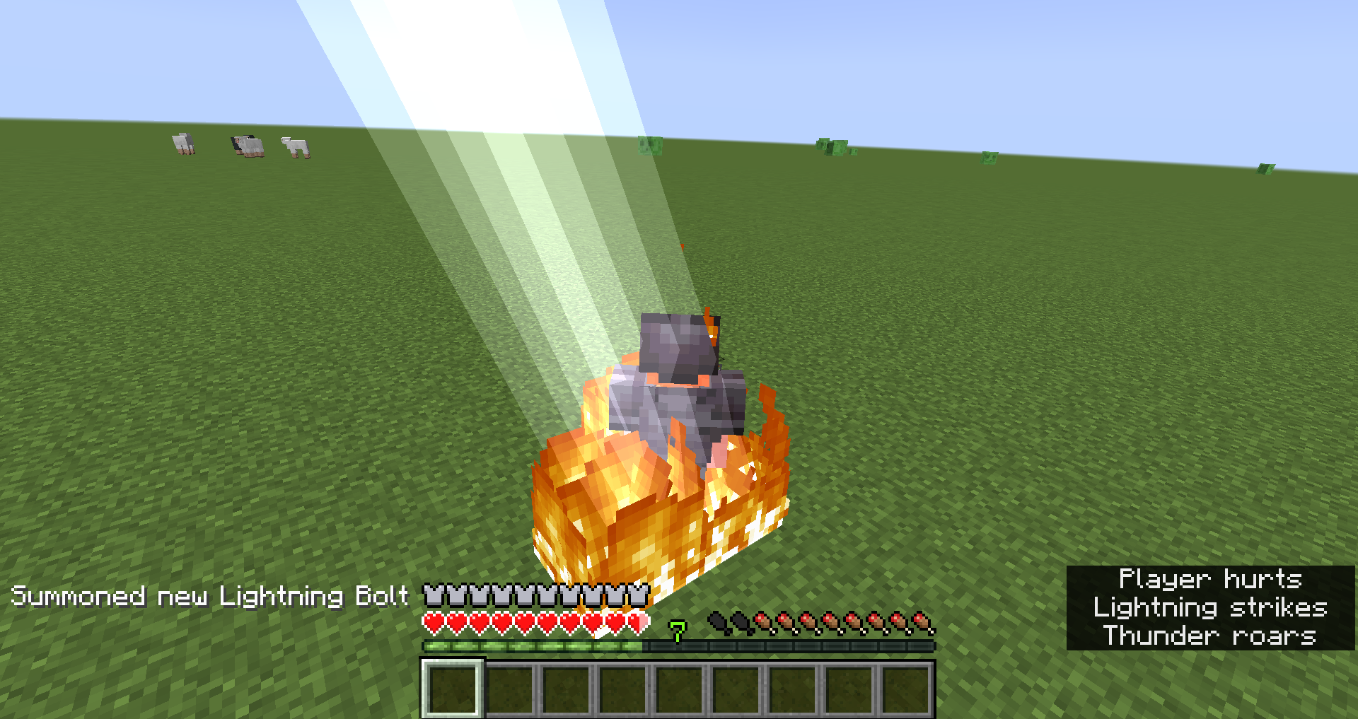 If the lightning strikes a player with armor you doesn't get full damage, but when go on fire you get full damage.