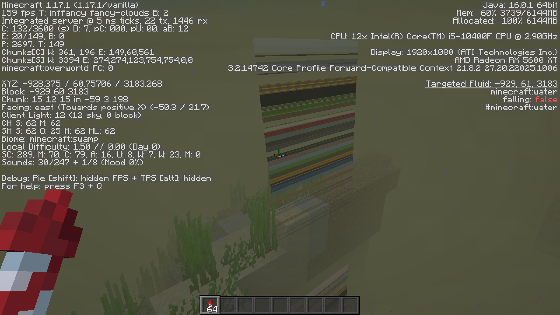 I'm thinking this has something to do with Minecraft's recent implementation of OpenGL 3.2 or Java 16, because this issue does NOT occur in 1.16.5 or any previous version. Either that or something wrong with AMD drivers.