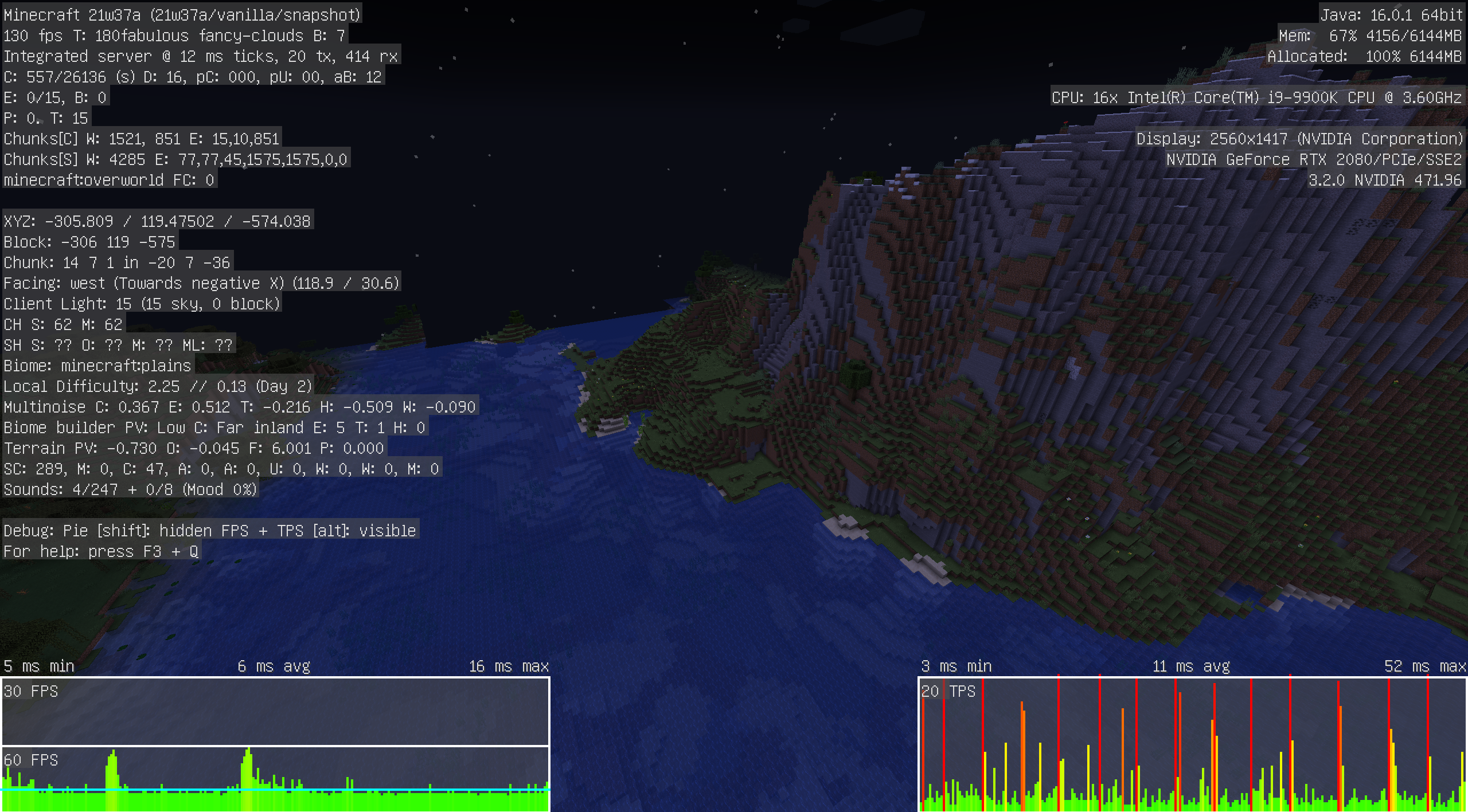 → ❌ Notice how large and continuous lag spikes sometimes occur when loading/reloading into a world in 21w37a.