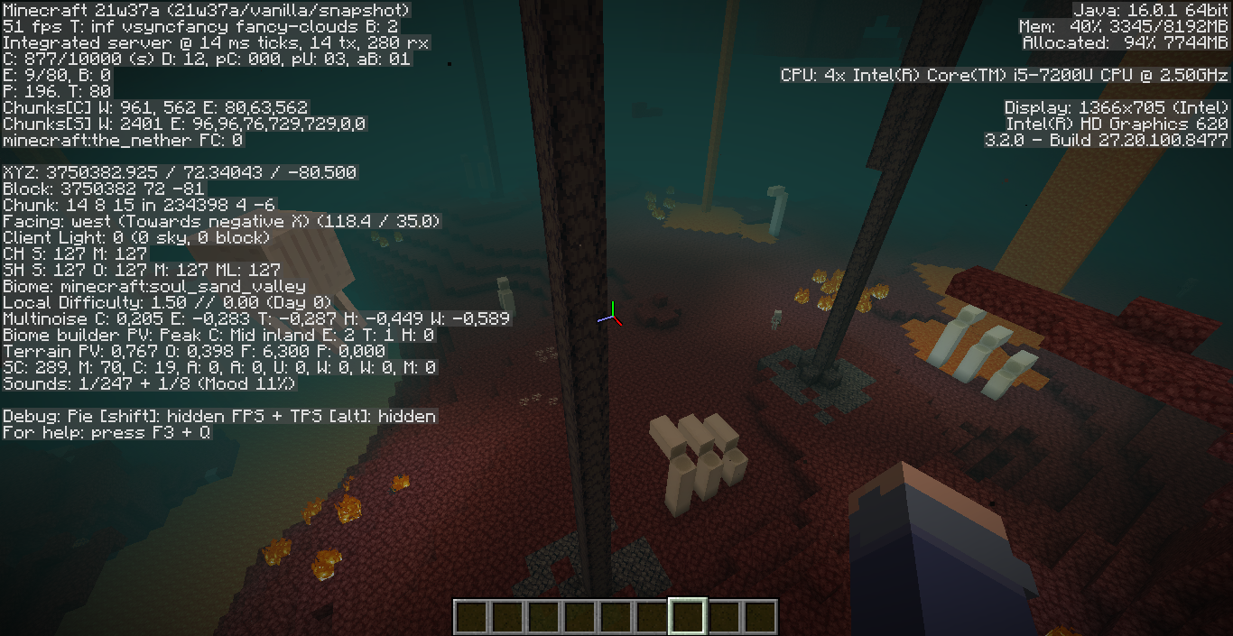 nether biomes do not generate correctly, for example the soul sand valley that generates without soul sand and forests do not generate their soil and trees