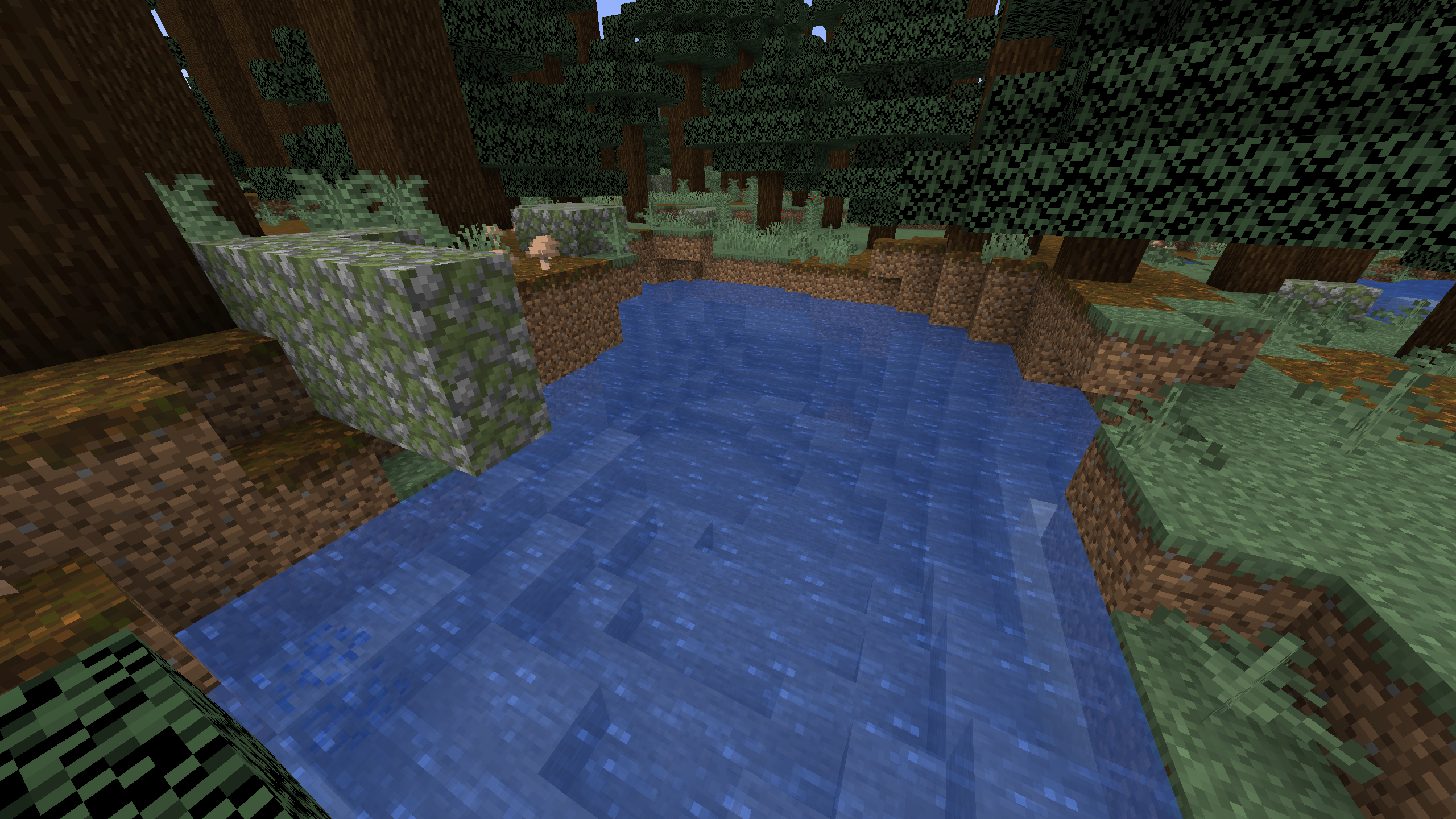 If a mossy cobblestone boulder in the Giant Tree Taiga would generate on the very edge of an aquifer, the boulder can be hanging over the side of the aquifer.