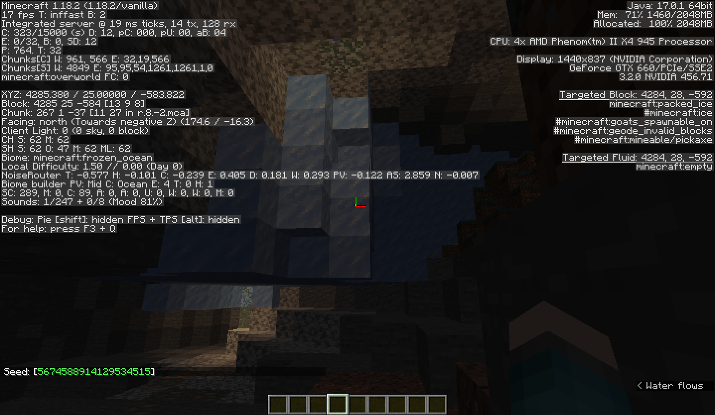 Coordinates: /execute in minecraft:overworld run tp @s 34425.82 24.00 587.91 -1183.47 11.87I've removed the part from this ticket concerning ice spikes. This issue is purely about icebergs being able to generate within caves. In other words, this problem cannot be seen with ice spikes and is exclusive to icebergs.