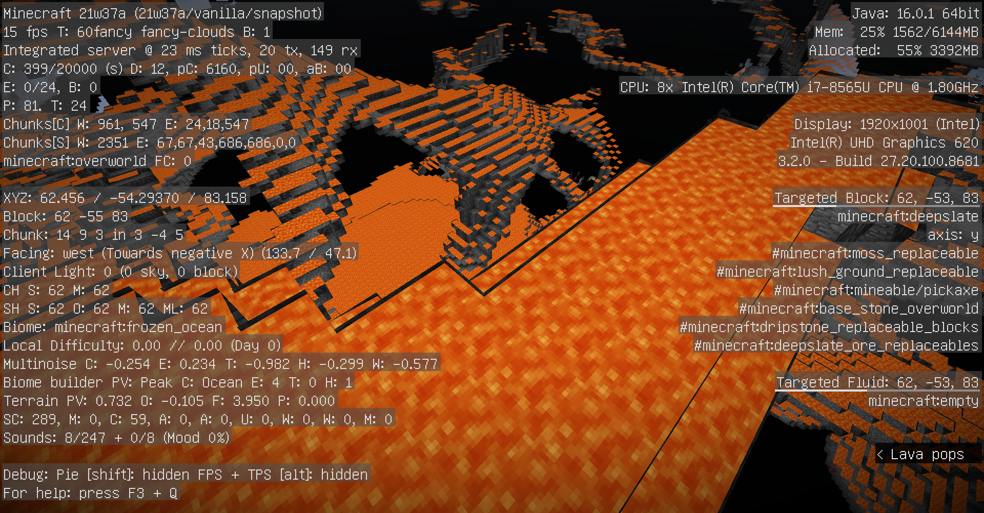 If a datapack is used to alter the minimum height limit for the overworld, lava will replace all air below y -54.