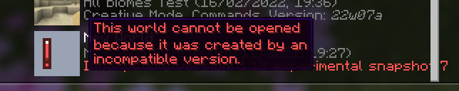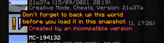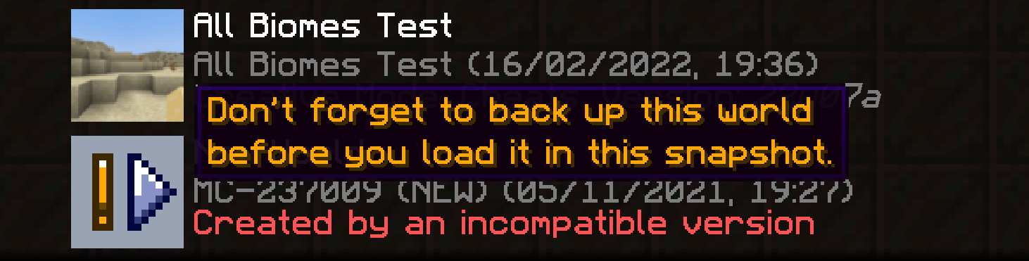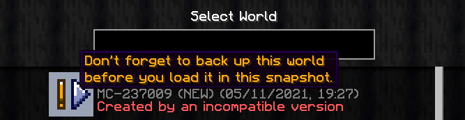 This is inconsistent with other inaccessible worlds and confusingly suggests that worlds opened in a snapshot version are less problematic than worlds with incompatible world formats.