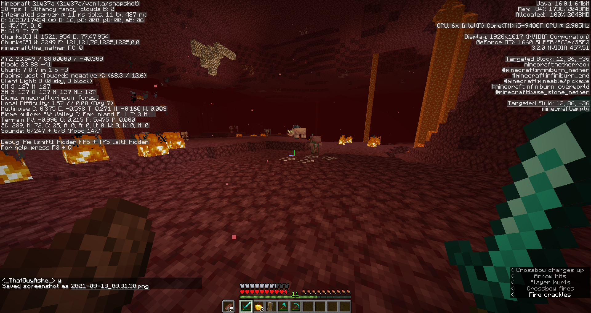Nether biomes not properly generating in 21w37a. soulsand valleys dont have soul sand, crimson/warped forests have no nylium so no nether trees can be harvested. structure generation seems to be unaffected as theres still fossils and broken nether portals in the nether.