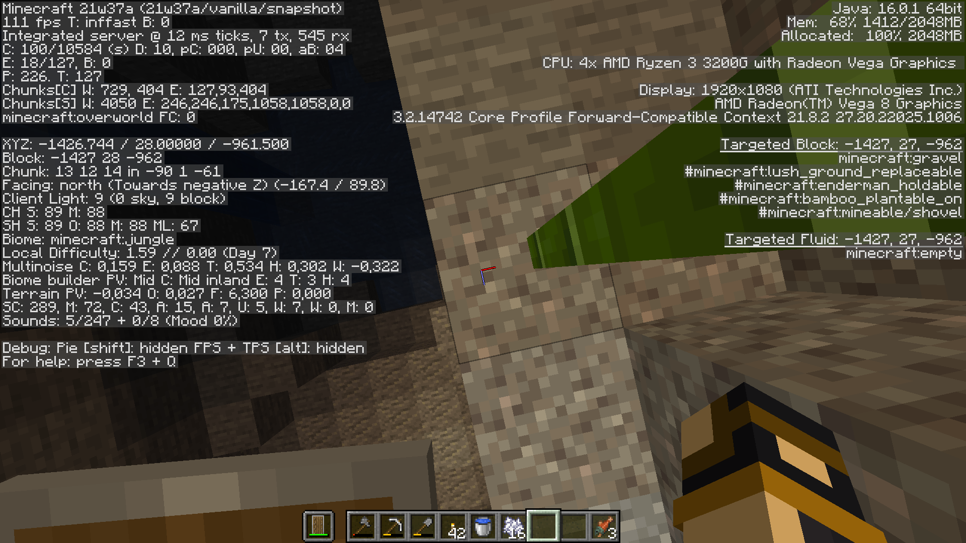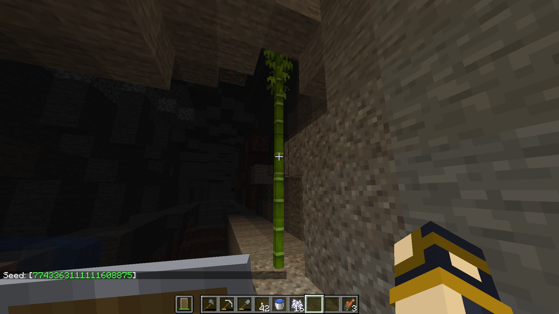 On seed '7743363111111608875'Coordinates: -1427 27 -962There is a gravel with a bamboo on top of it, generating in a cave