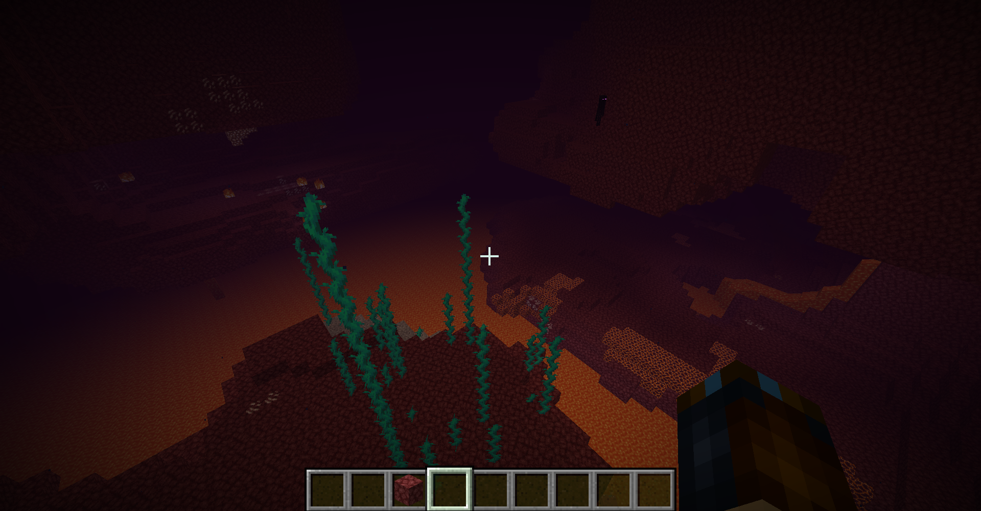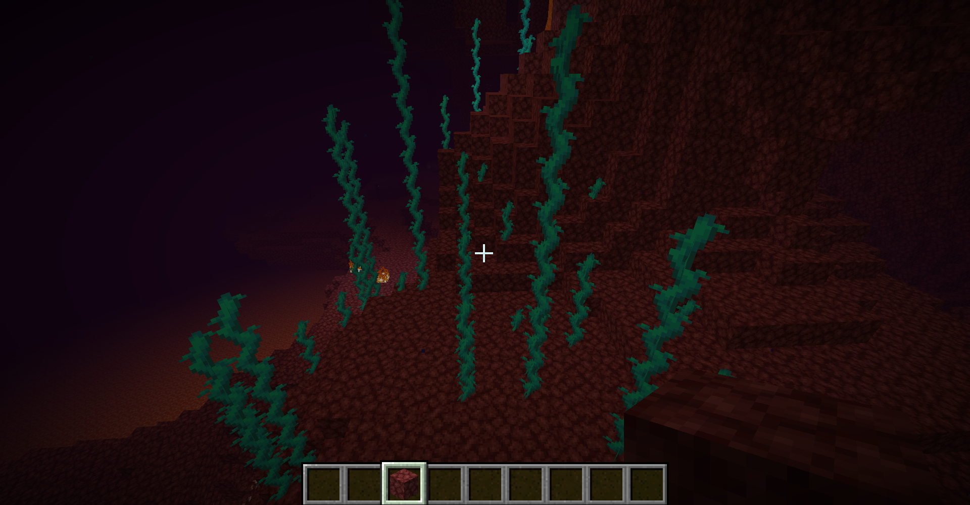 In both crimson forests and warped forests the giant mushroom trees and respective mycelium blocks that cover the ground are not generating in single player worlds. Only the respective vines to each biome generate, plus some roof decoration of wart blocks in crimson forests.