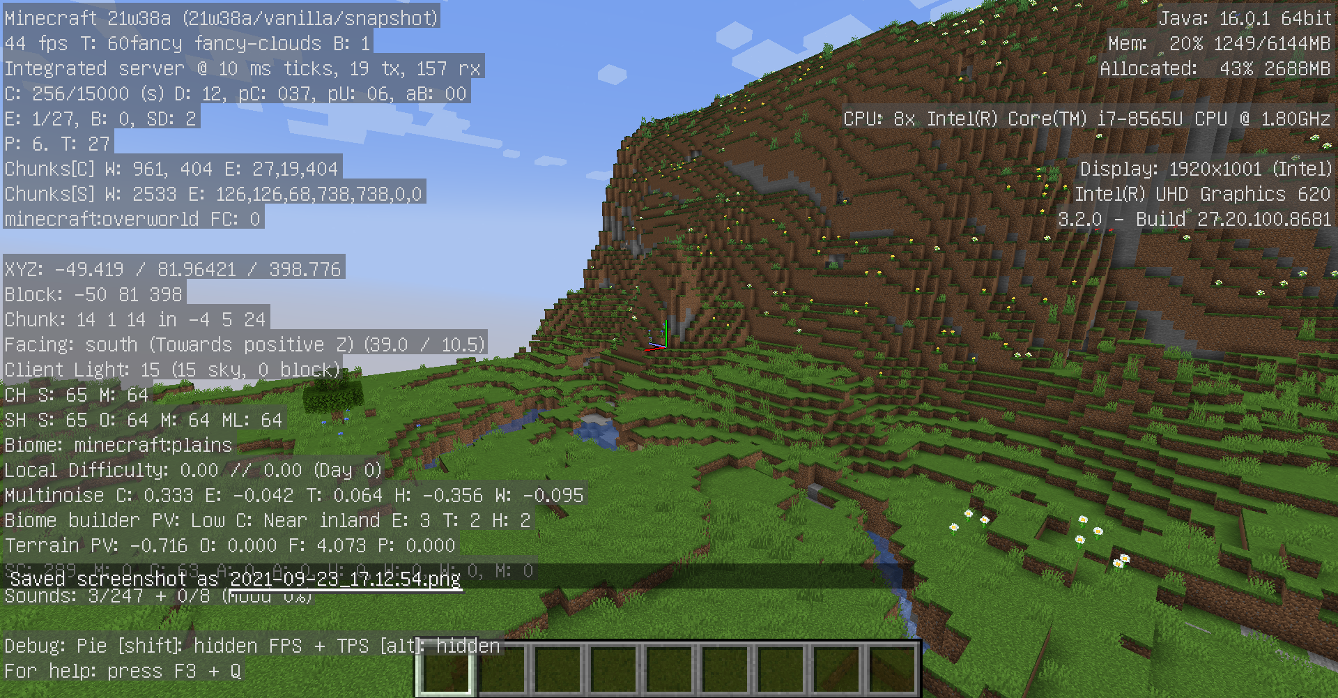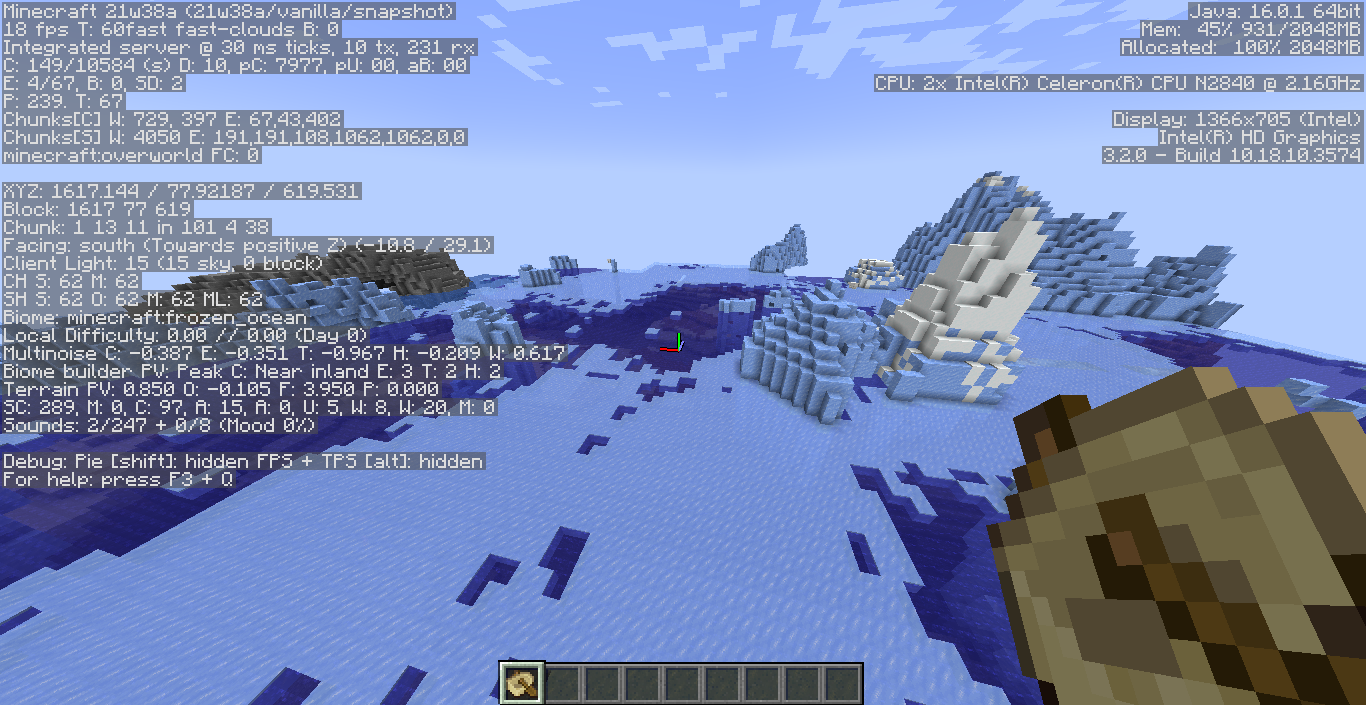 In 21w38a, the biome builder noises for Continentalness, Erosion, Temperature, and Humidity are locked at Near Inland, 3, 2, and 2, respectively.