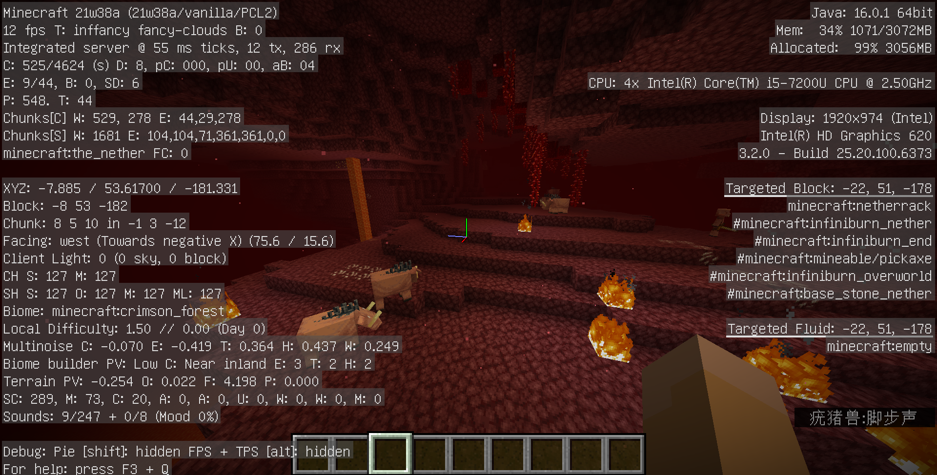 There are no Huge Fungi, Nyliums,Fungi in the Crimson Forest and Warped Forest,there are no Soul Sands and Soul Soils in the Soul Sand Valley