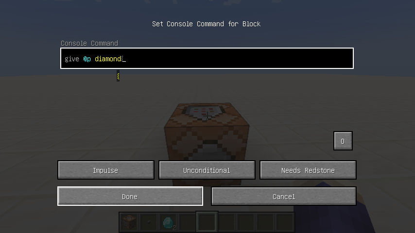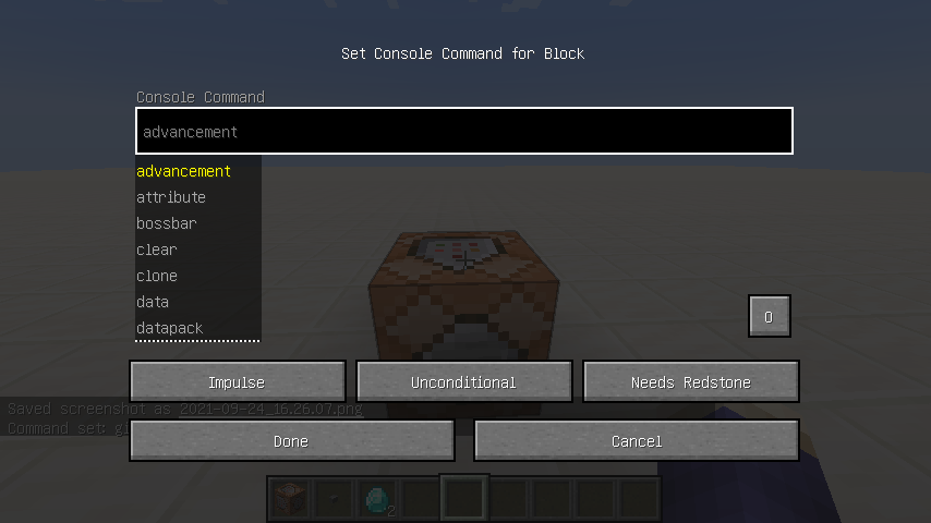 Step4. Close command block's interface with "Done" button.
