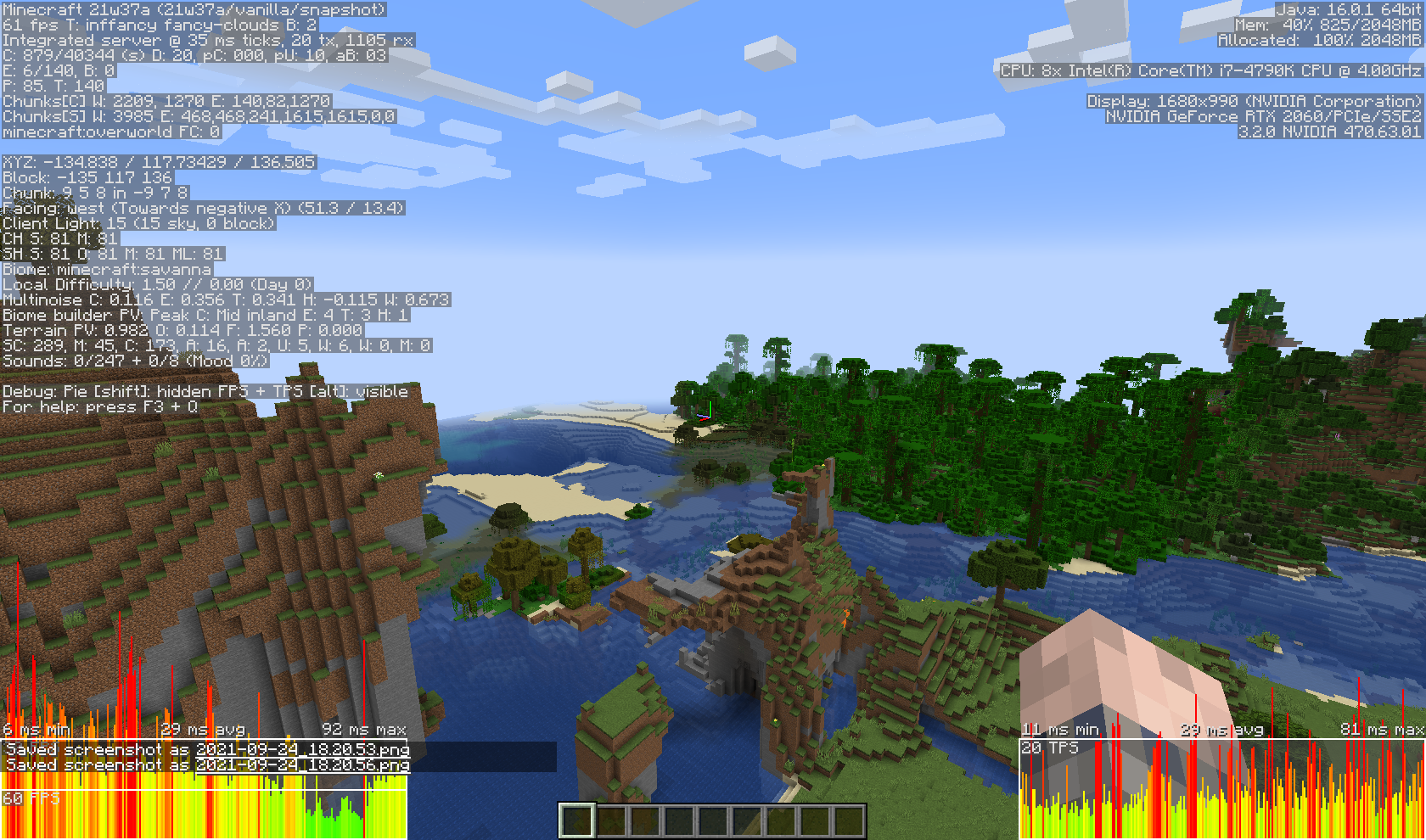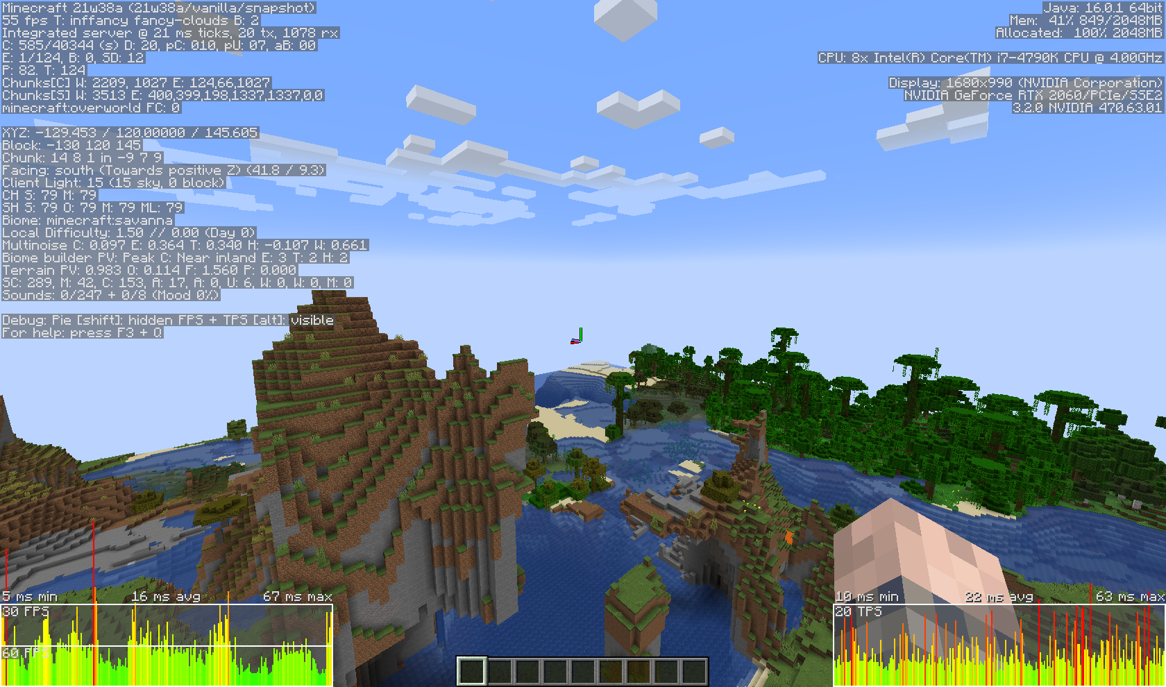I was not able to test each version on the exact same map due to seed weirdness, so 1.17.1 is in a different spot, but one that should be even more GPU heavy than the scene in the snapshots, yet performs way better.