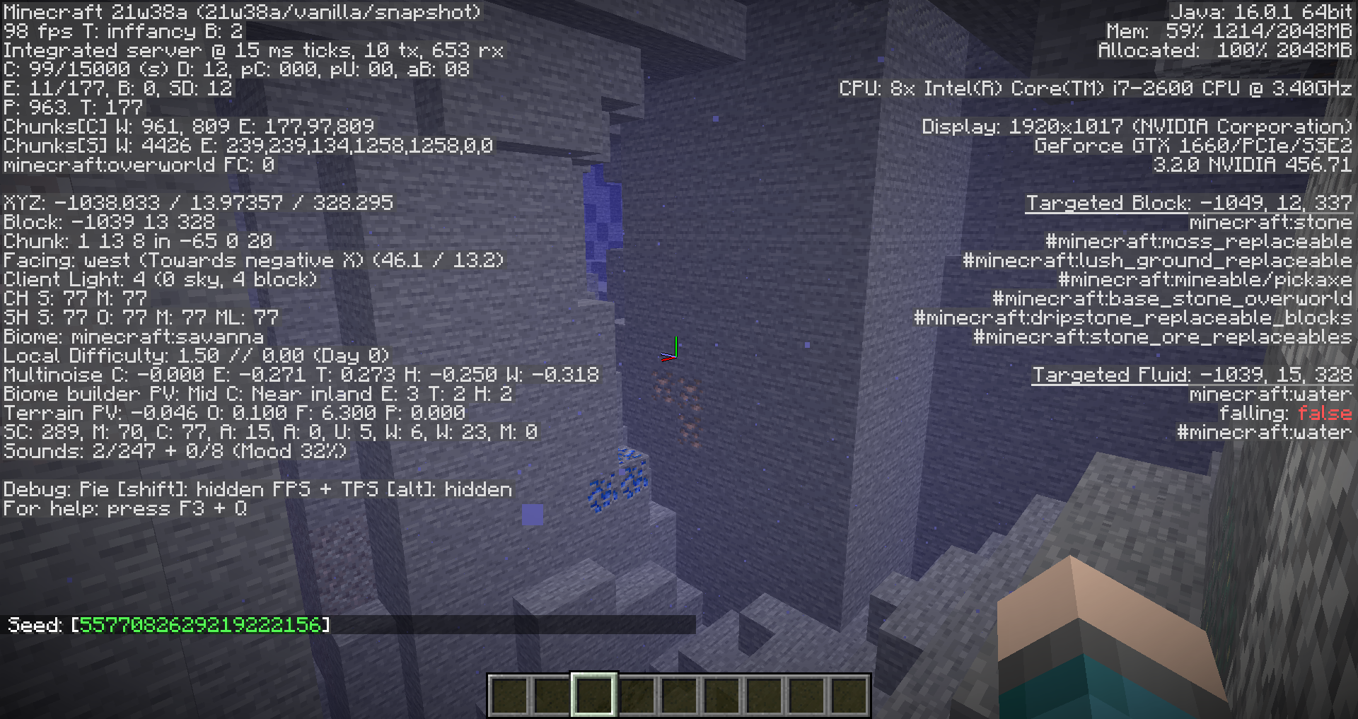 Coordinates: /execute in minecraft:overworld run tp @s -1038.03 13.97 328.29 406.06 13.17→ ❌ Notice how aquifers can occasionally generate with sharp and unnatural edges.
