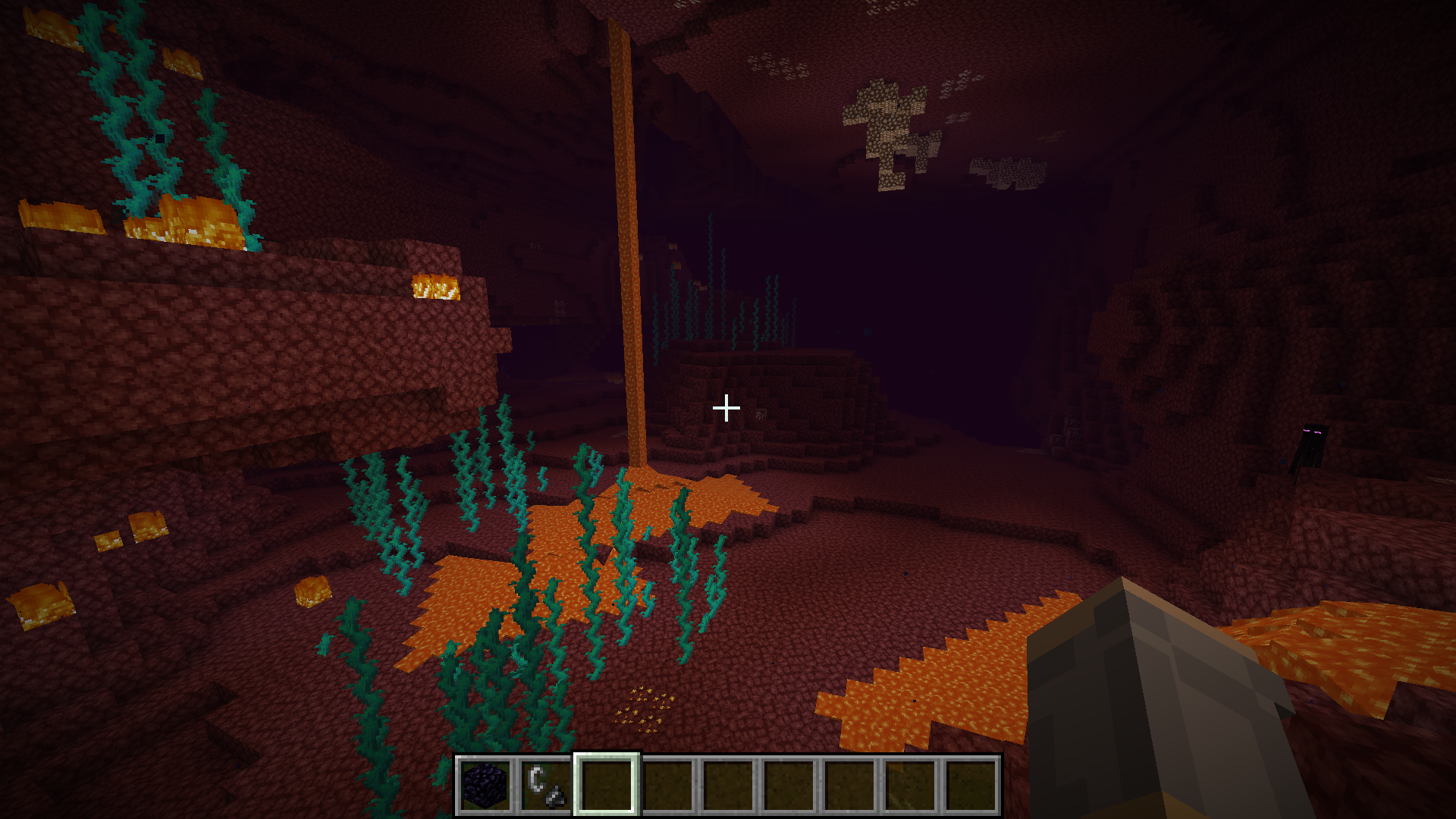 there should be red nylium and crimson trees in the crimson forrest. blue Nylium and blue trees in the warped forrest. souls sand and soul soil in the soul sand valley biomes