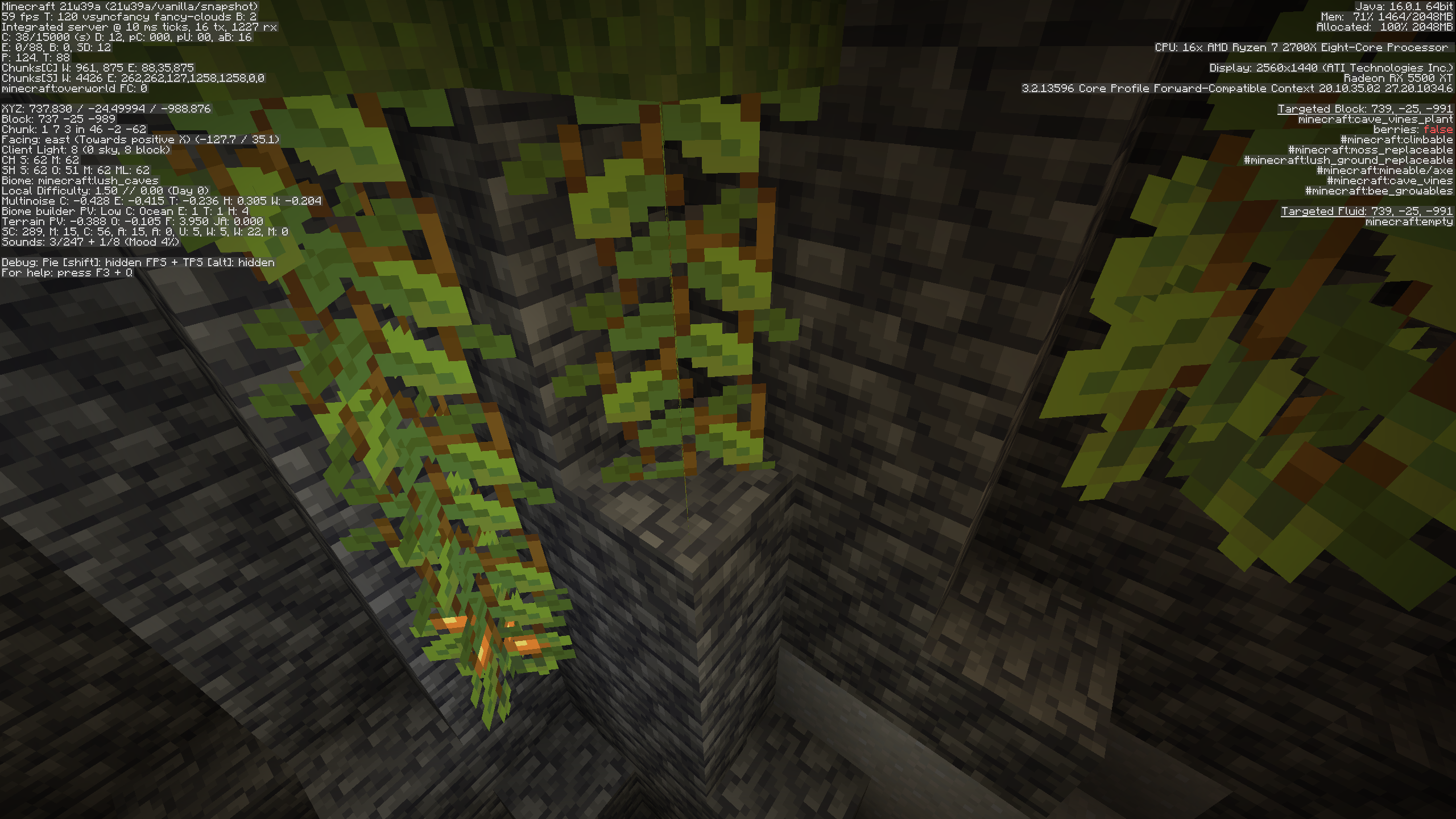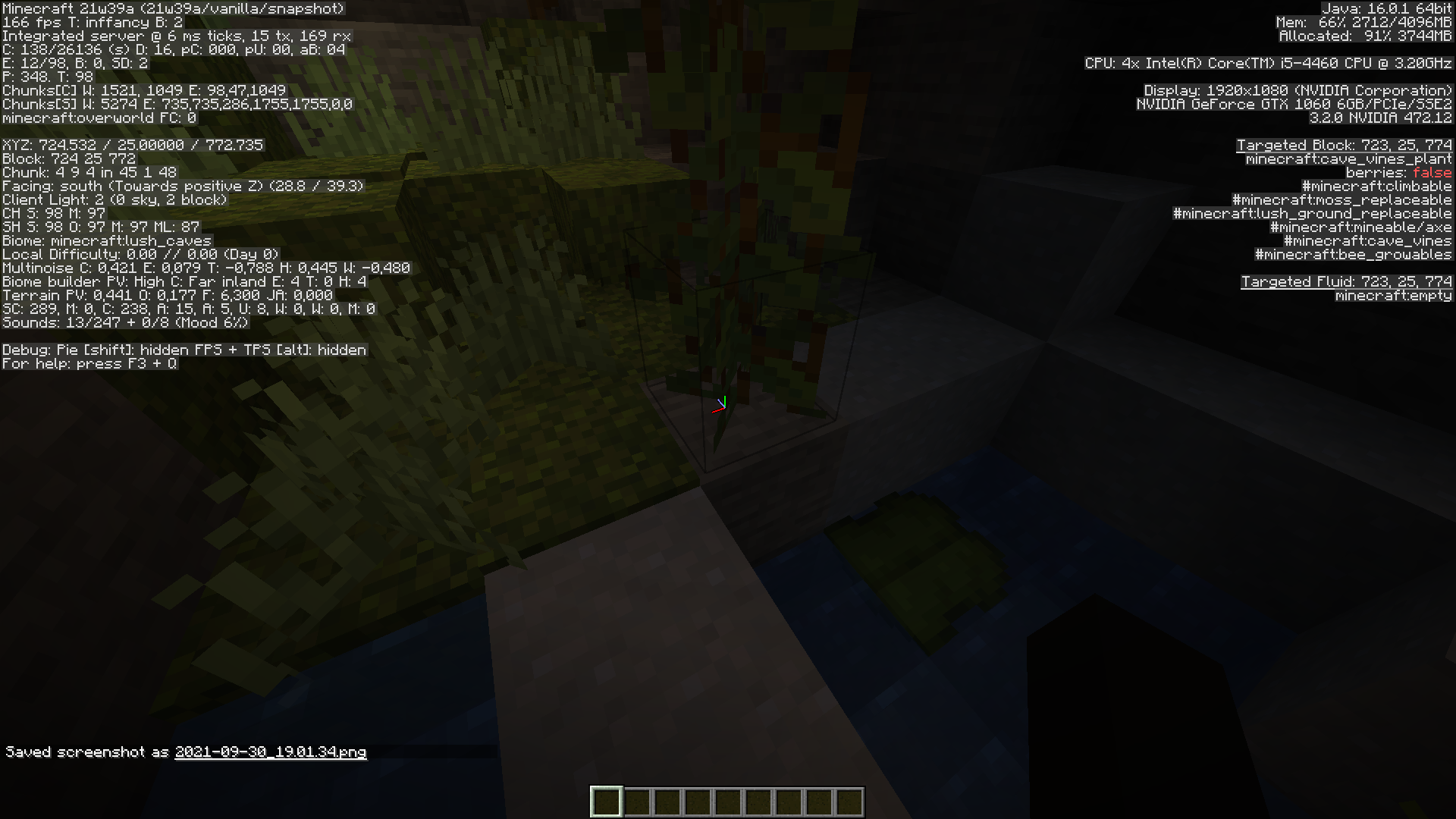 Coordinates: /execute in minecraft:overworld run tp @s 737.83 -24.50 -988.88 -127.65 35.25Travel around that lush cave there and it should happen regularly. Due to MC-219200 it might be in a different place each time
