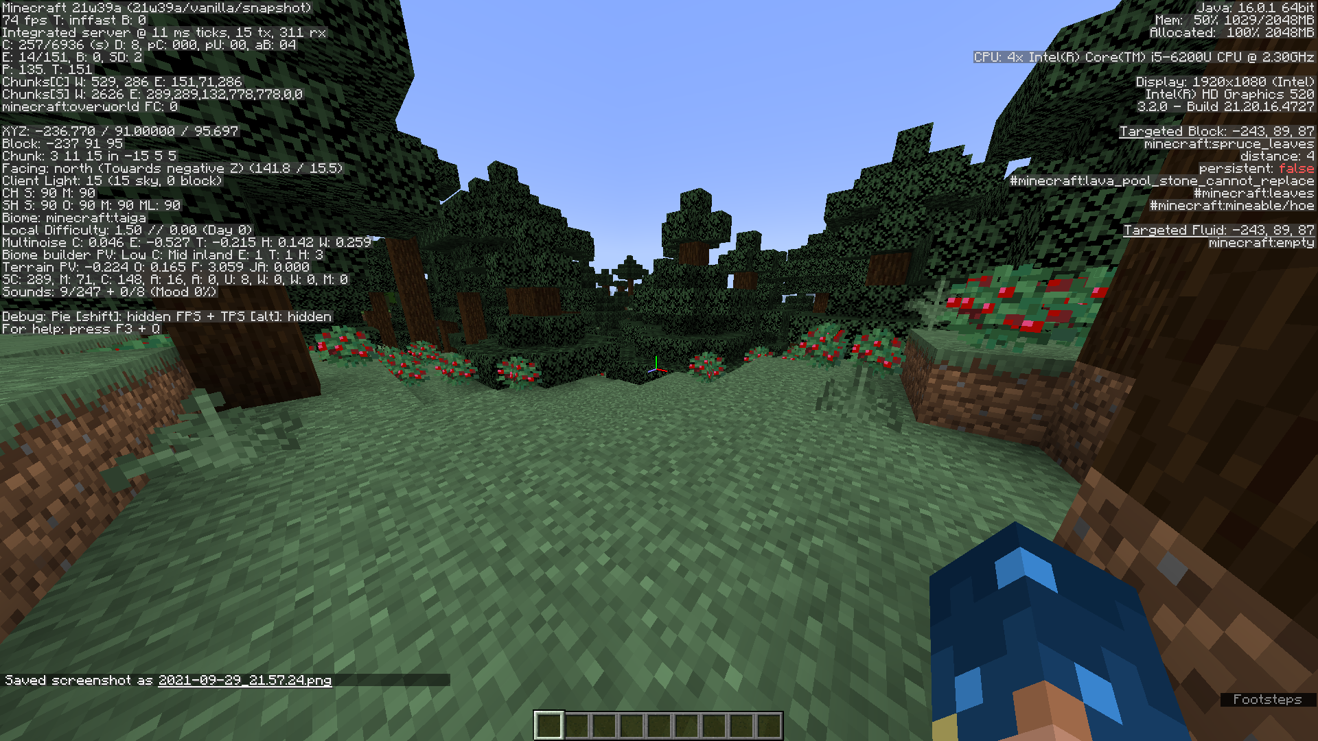 2: Locate a taiga biome (/locatebiome minecraft:taiga)