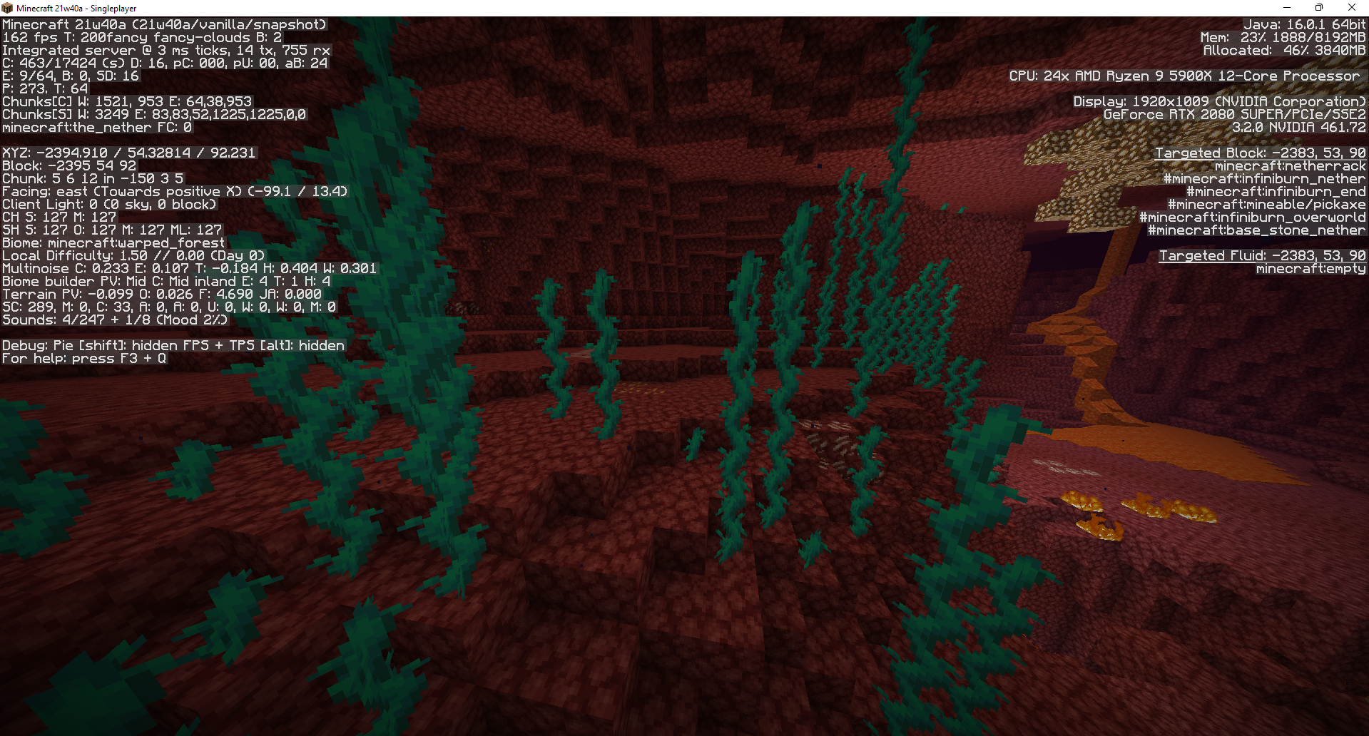 Nether forest biomes do not generate properly. The only part that generates in these biomes is floating vines and leaves.