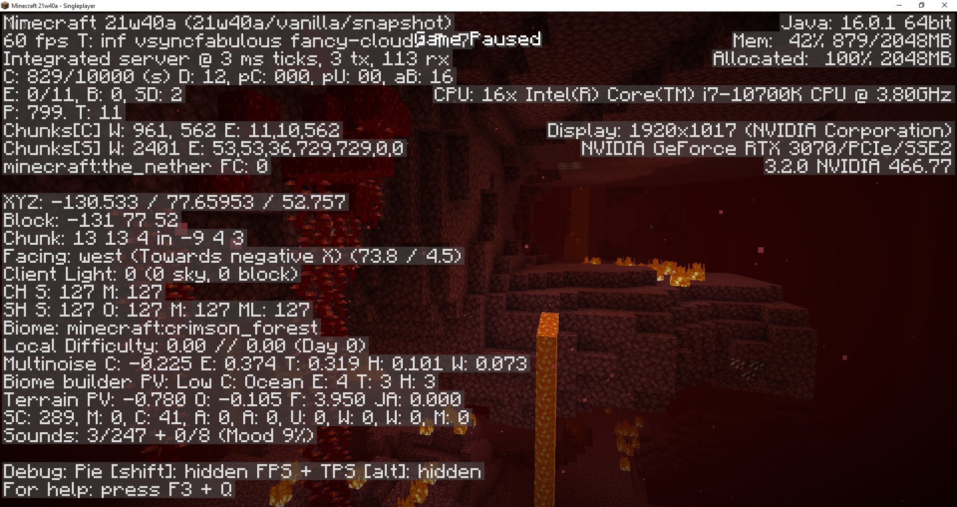 the crimson forest, warped forest, and soul sand valley all generate like the nether wastes in both 21w39a and 21w40a