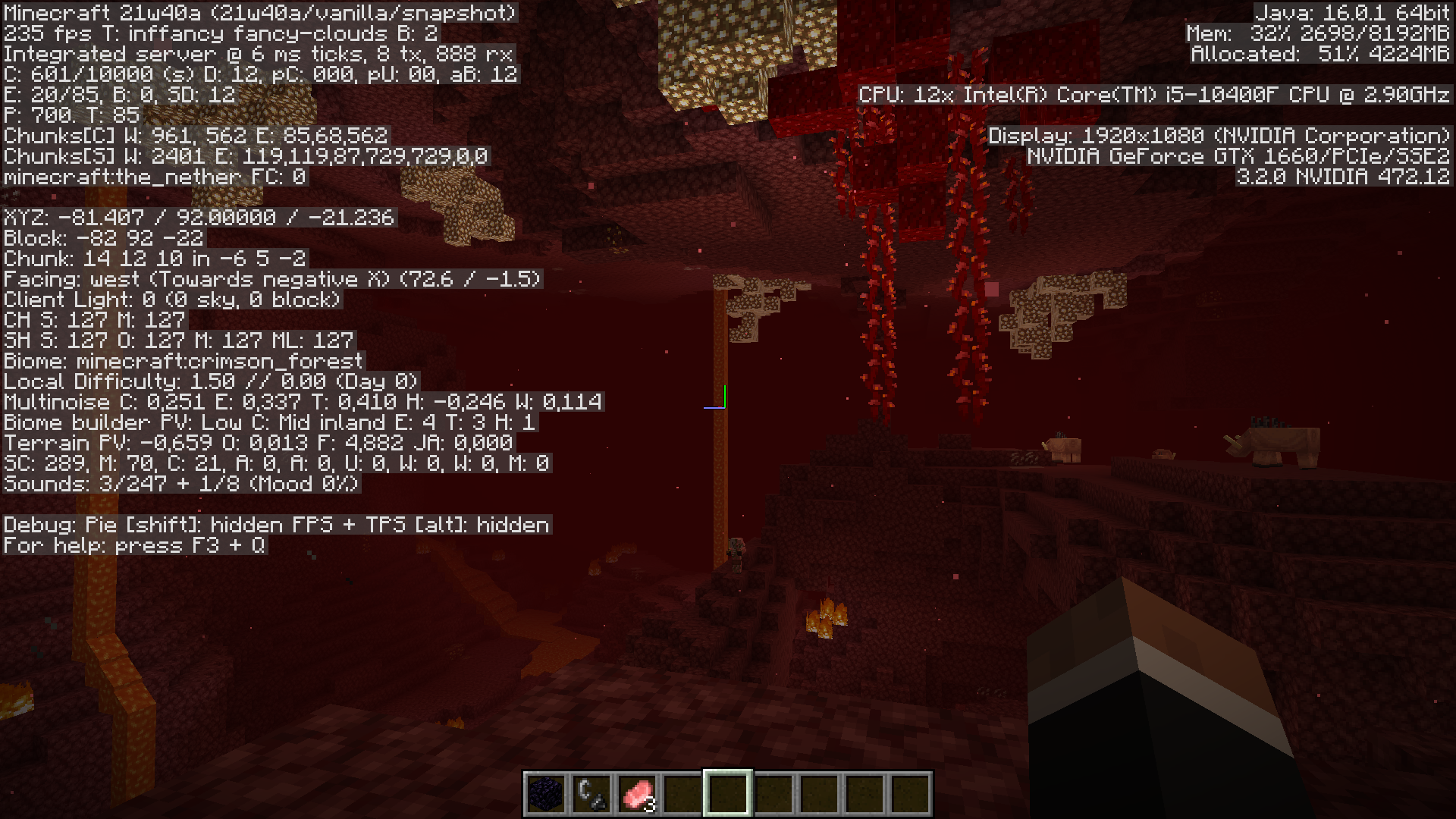 For some reason, in nether biomes, like Crimson/Warped Forest and Soulsand Valley, are not generating blocks, like crimson/warped block, crimson/warped fungi, soulsand. But still, in those biomes still generating Warped/Crimson vines, and in Soulsand Valley - Fossils.