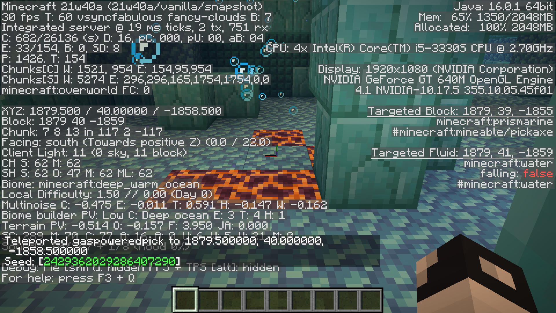 Generate a world with the seed provided above and teleport to the given coordinates.