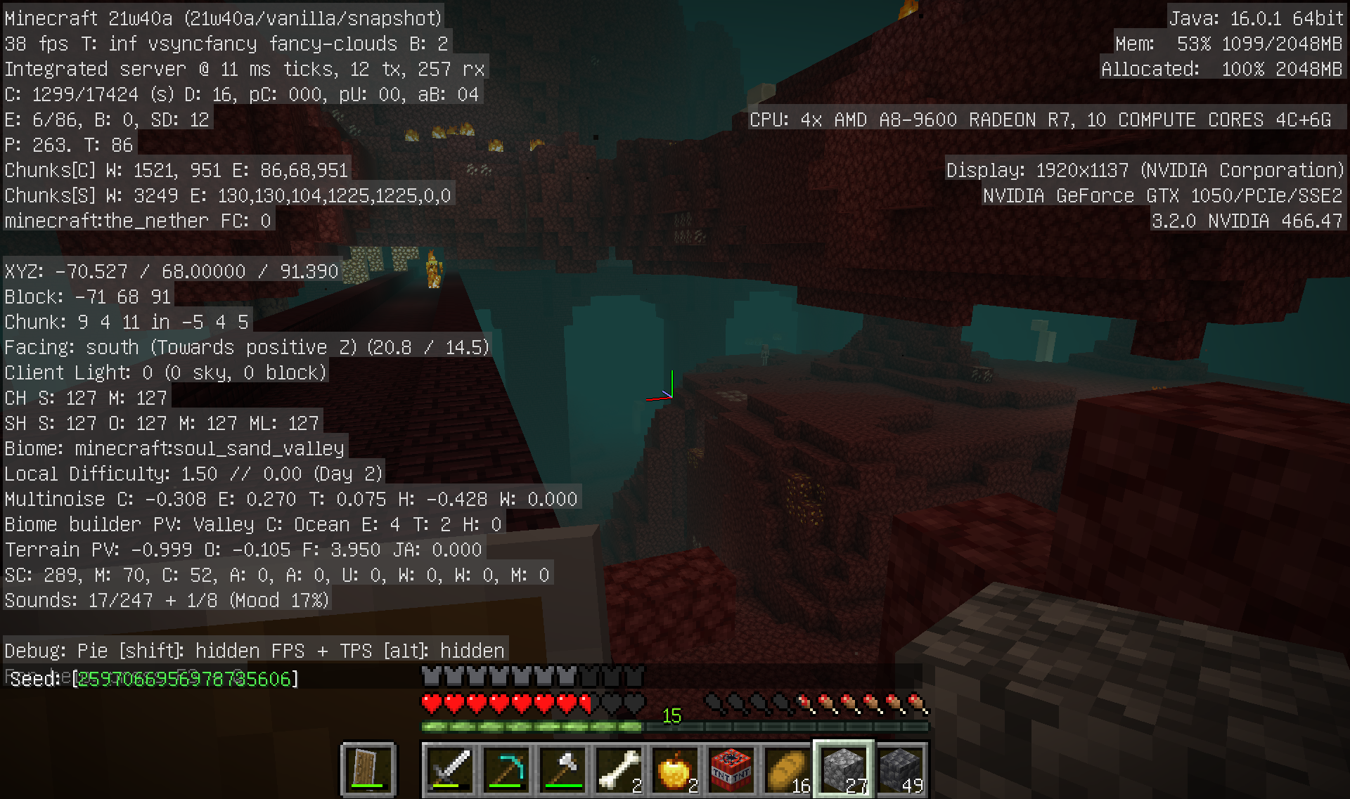 I started a new world in the new snapshot and upon entering the Nether, there is no soul sand in soul sand valleys. However, Ghasts still spawn, those bone structures still generate, and it still has that blue fog.