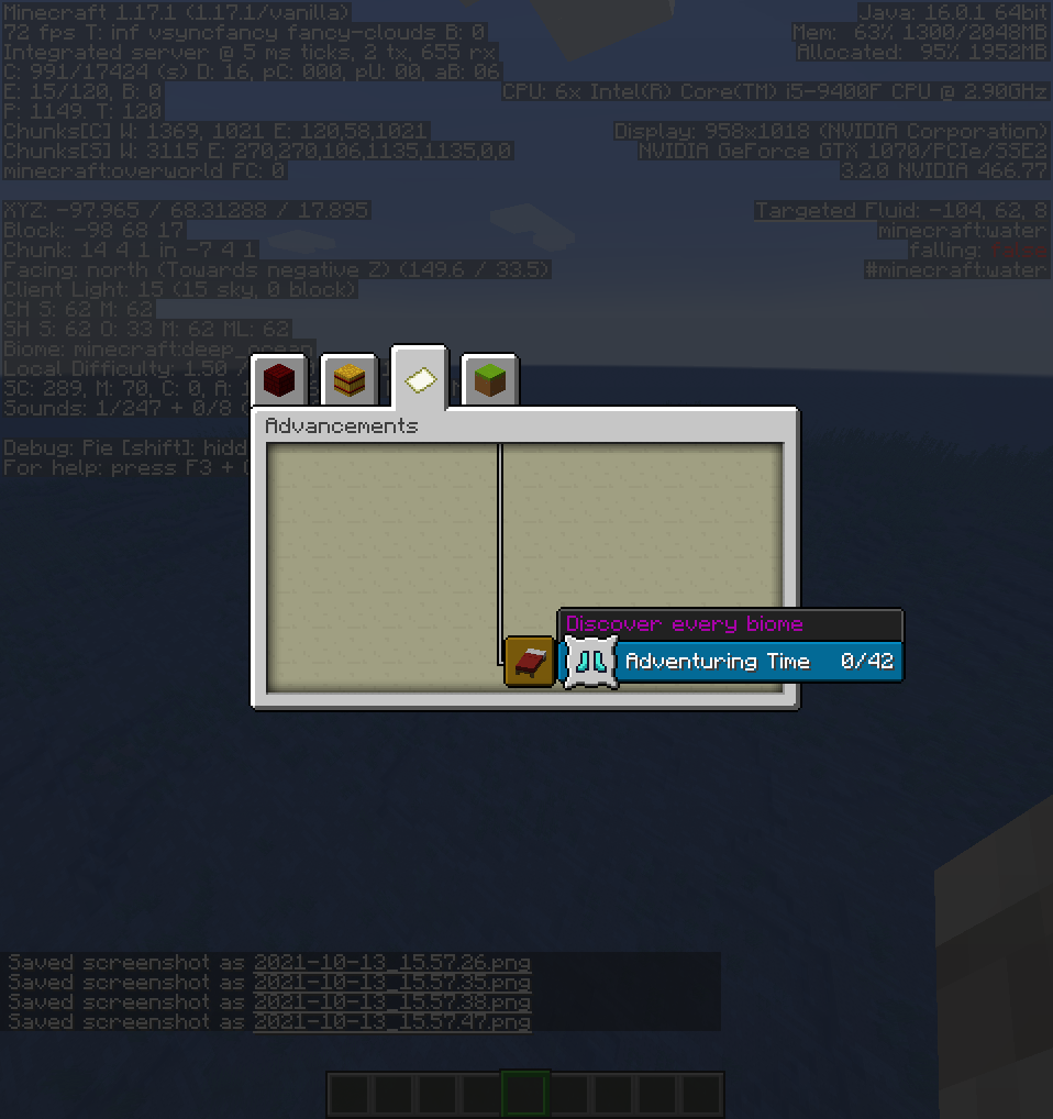 It was an normal generated world and the screenshots were taken a minute after i created the world.