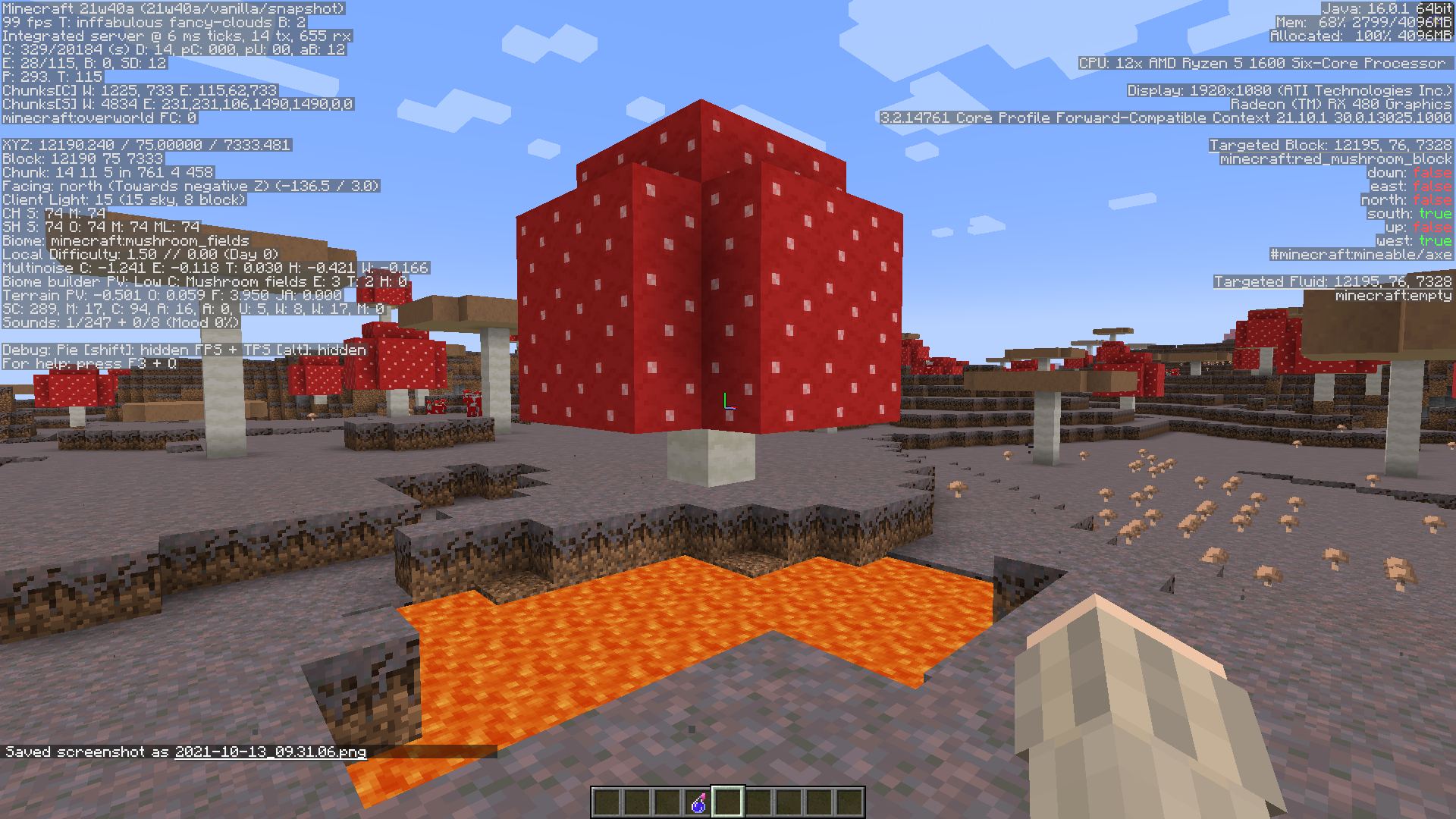 Giant mushrooms can generate floating over lava lakes.