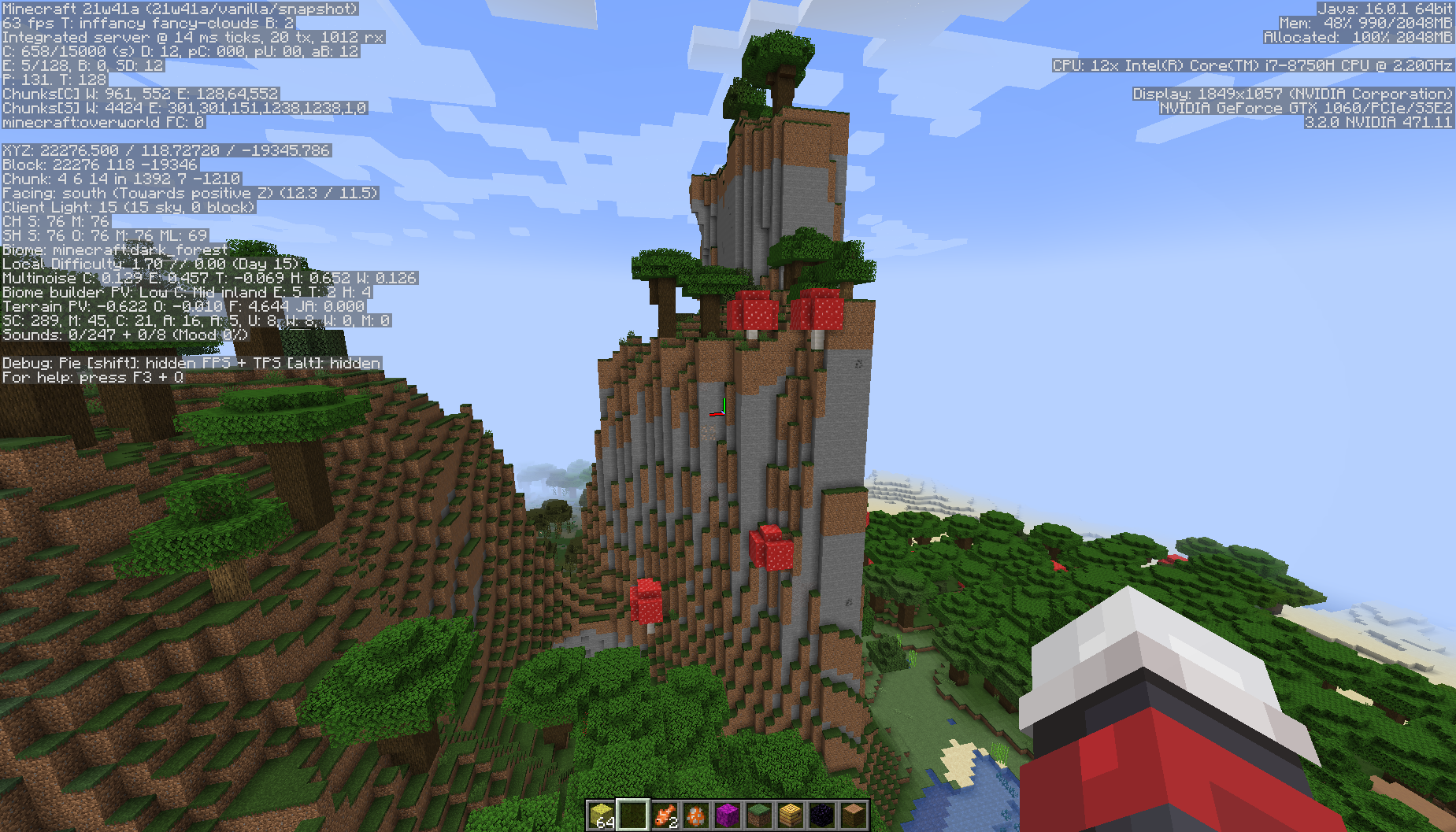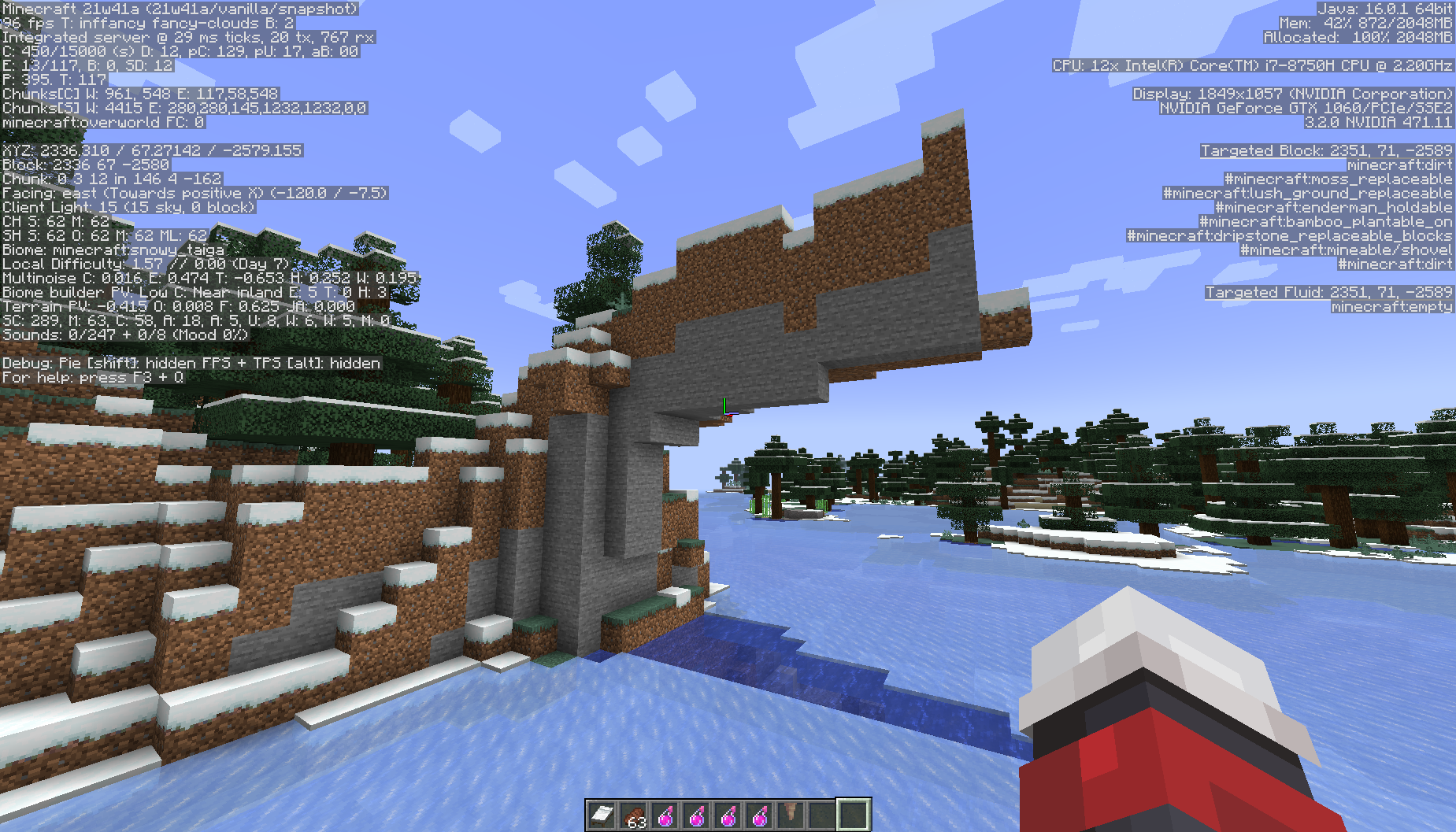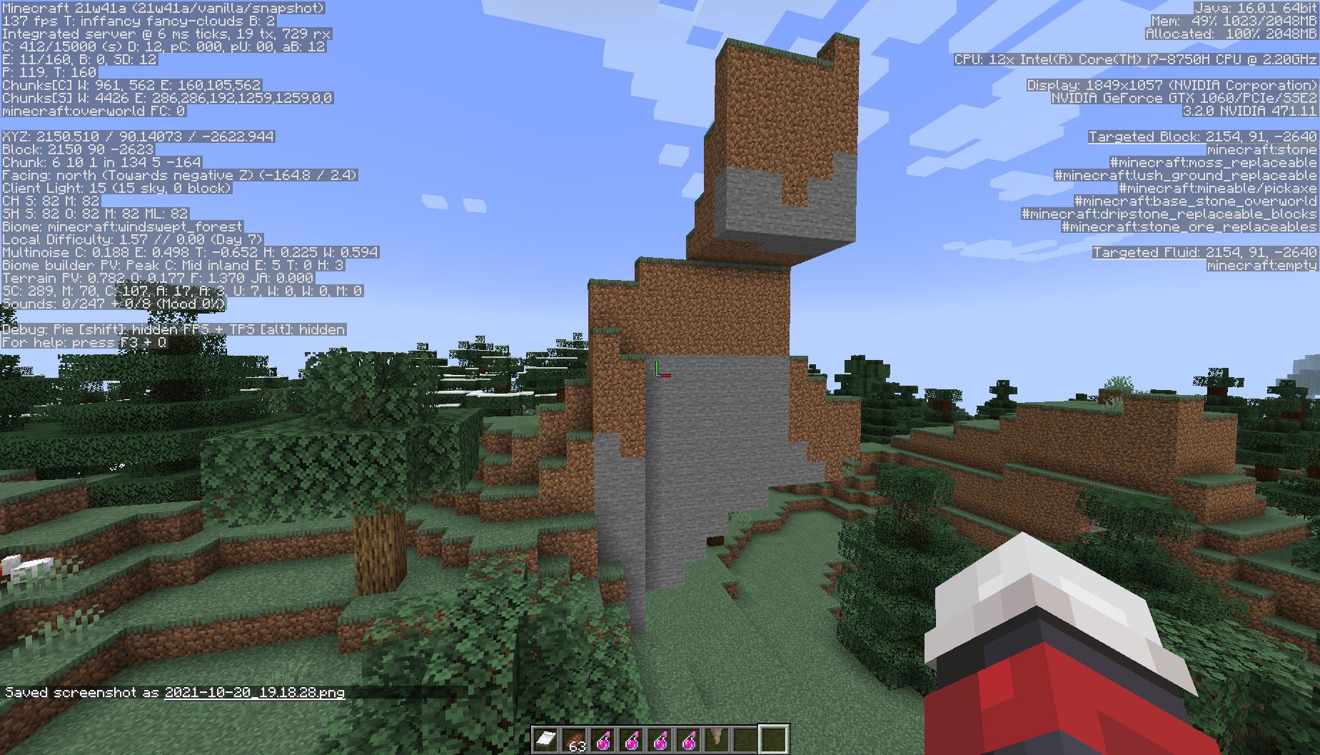 Unusual generations of blocks in Windswept Forest biome for the current seed above and specified coordinated below.